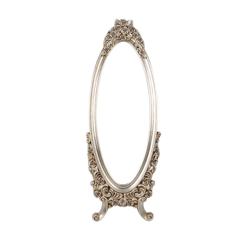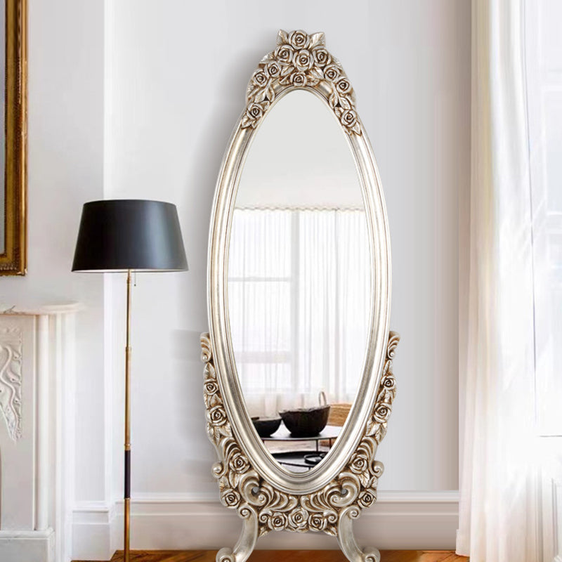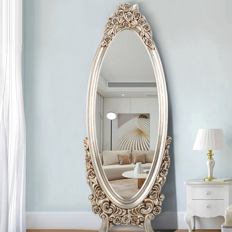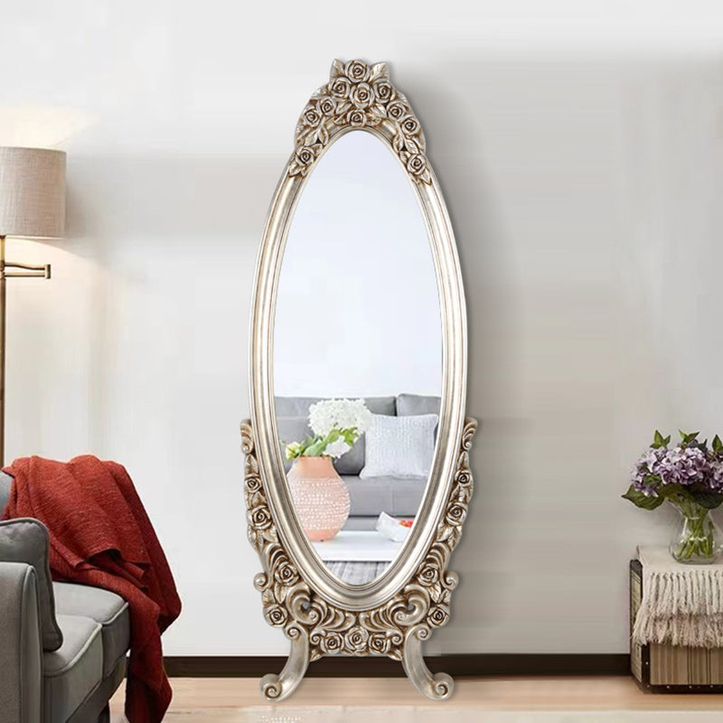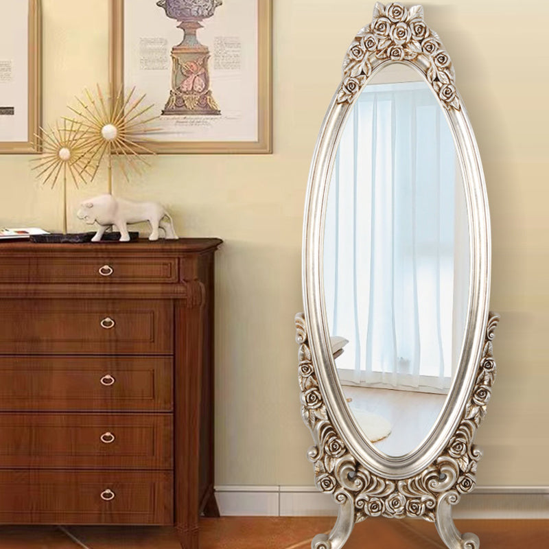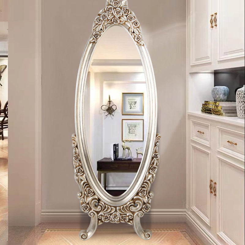 Introduce opulent detail and dramatic vintage charm with this exquisite traditional European-style oval full-length mirror. The frame features a stunningly detailed, ornate PU faux-wood carved design, replicating the classic artistry of antique mirrors without the heavy maintenance. This intricate craftsmanship establishes the piece as an immediate, beautifully detailed decorative focal point in any room.