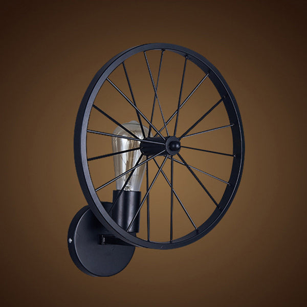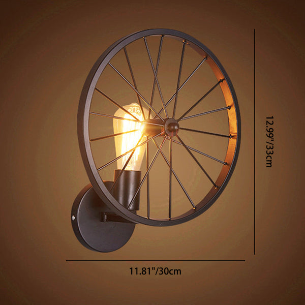 Contemporary Industrial Round Wheel Iron Glass 1-Light Wall Sconce Lamp For Living Room