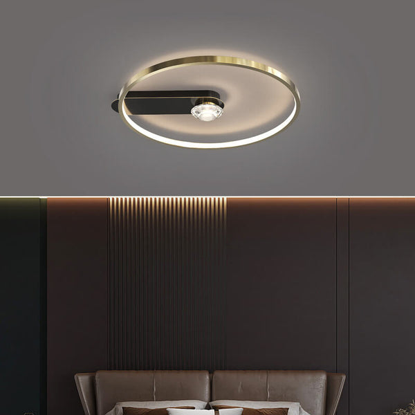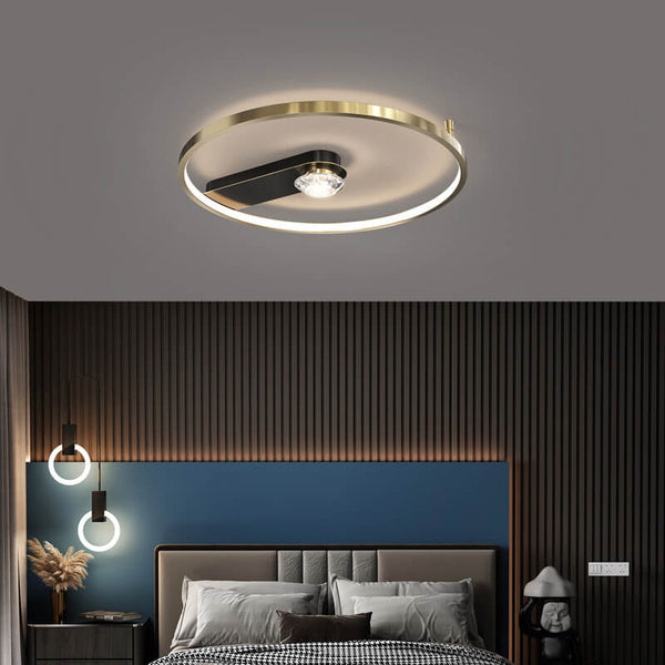 Industrial All Copper Light Luxury Crystal Round LED Flush Mount Light
