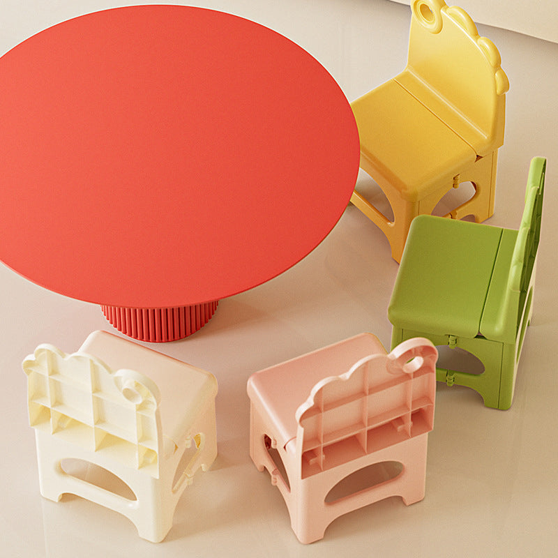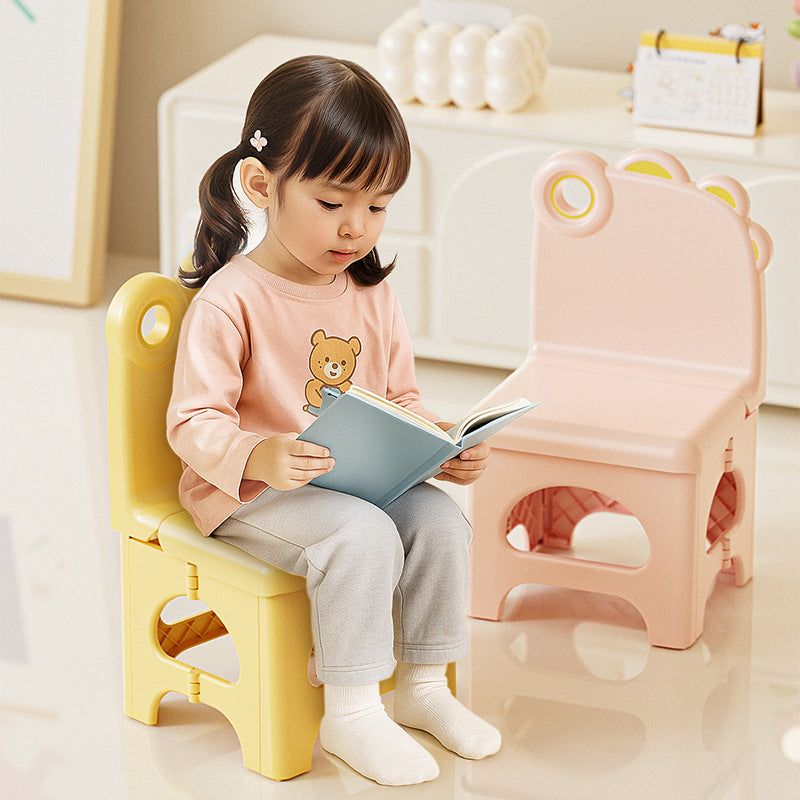 Prioritizing safety, the design includes smooth rounded edges and anti-slip stability to ensure a secure environment for your little ones. Available in a charming color palette of cream white, pink, yellow, and green, this foldable and space-saving chair seamlessly blends whimsical style with long-lasting durability.