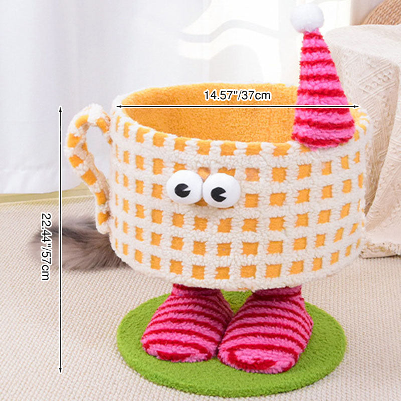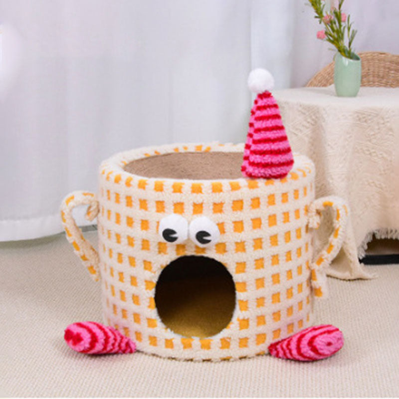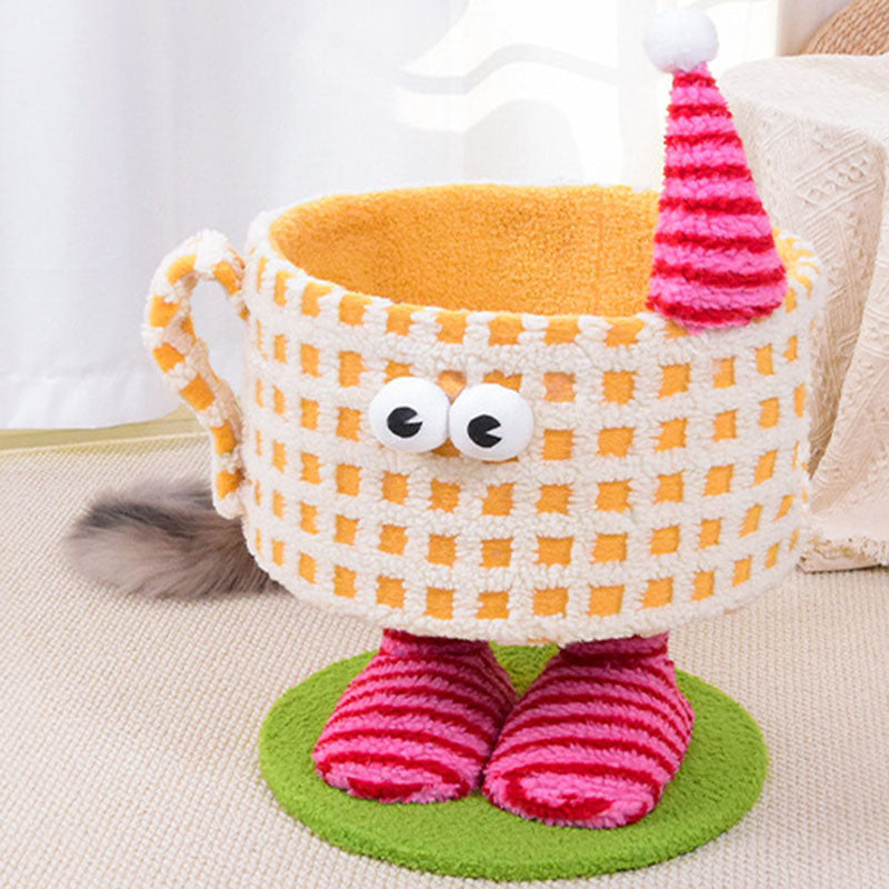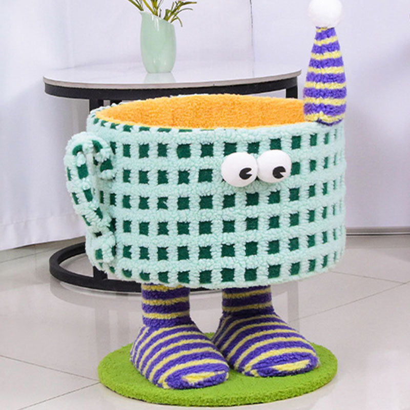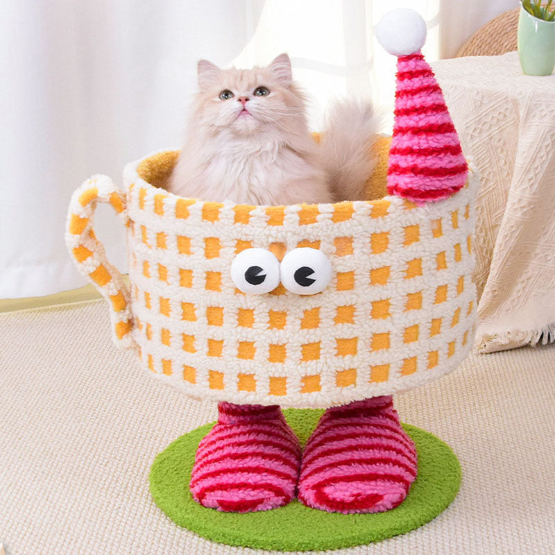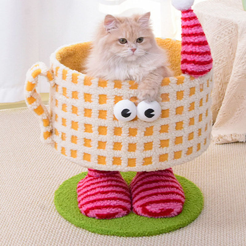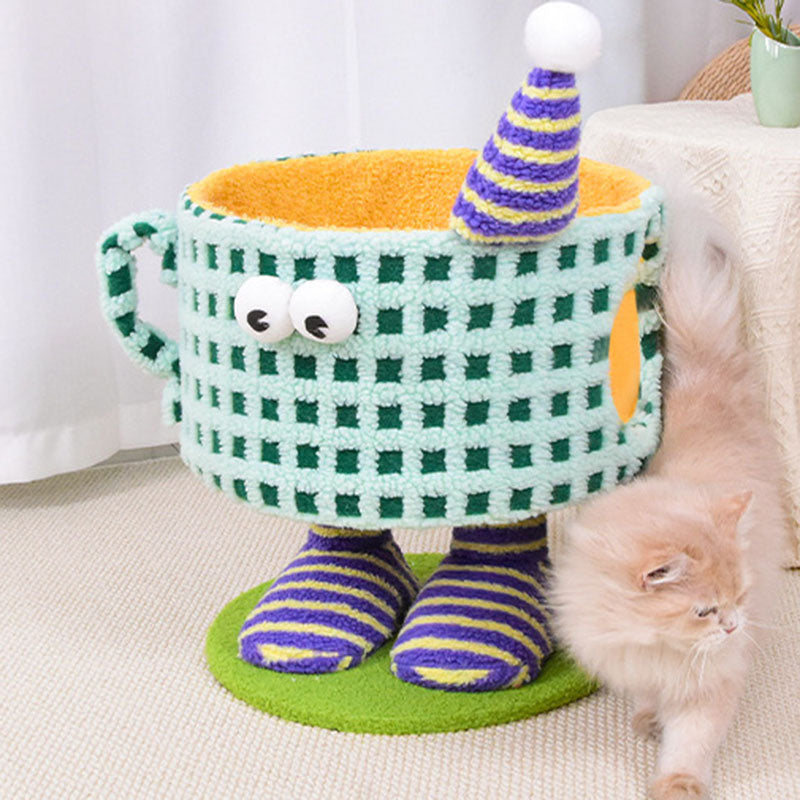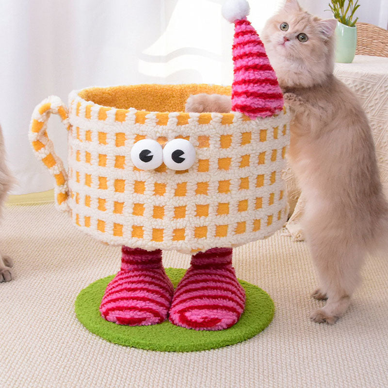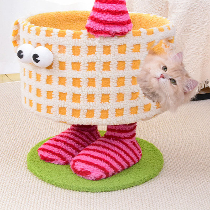 Contemporary Creative Cylindrical Cup-Shaped Velvet Fabric Sisal Paper Tube Multi-Functional Cat Tree For Bedroom