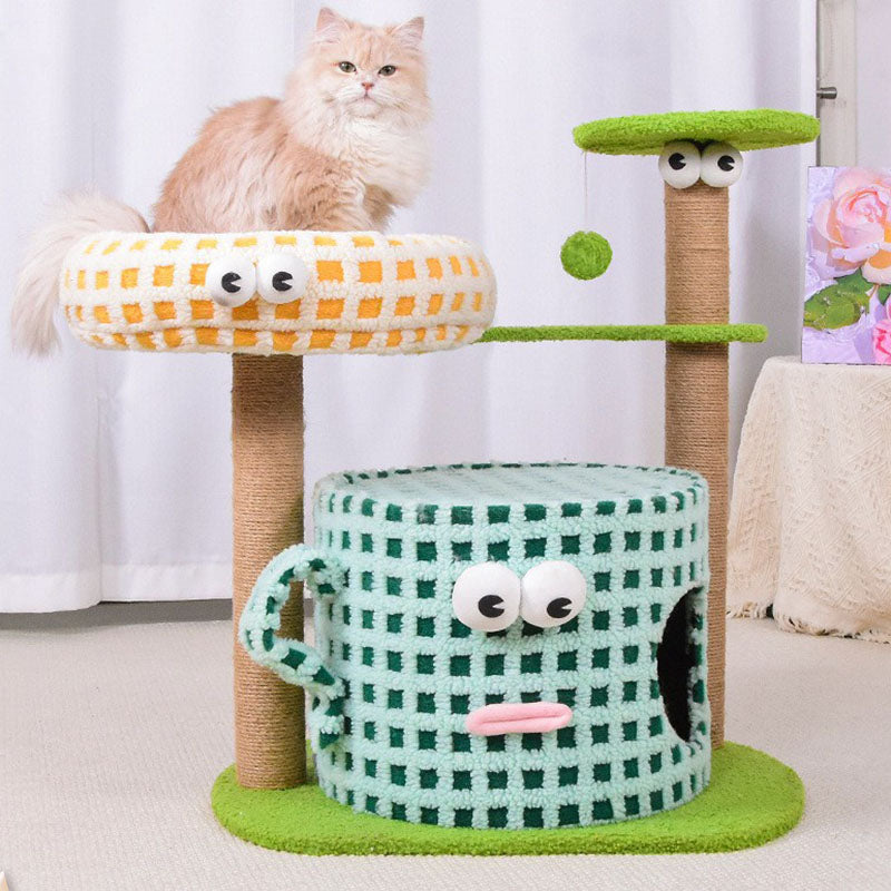Engineered with the needs of multi-cat households in mind, this tower offers extensive utility with options for one or three levels of activity. The structure provides dedicated spaces for sleeping, engaging play, and essential scratching, guaranteeing endless fun and comfort for your felines. Available in vibrant Yellow and playful Green, this functional piece is optimized for North American consumers searching for unique monster cat scratchers, jute and plush pet furniture, multi-level cat posts, and fun, colorful multi-cat solutions.