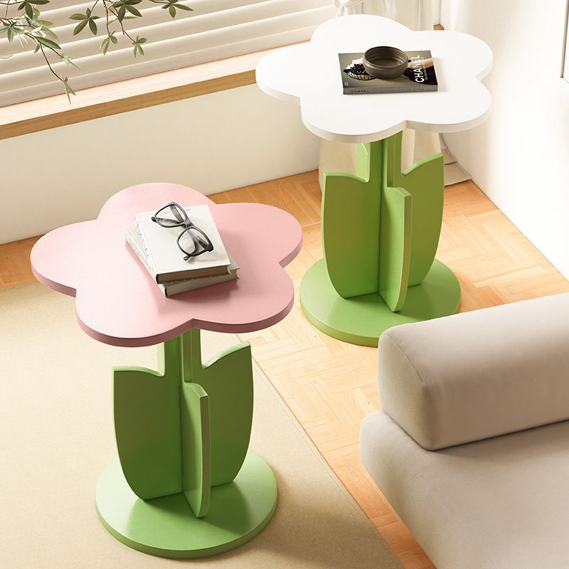 Contemporary Creative Floral-Shaped Engineered Wood Solid Wood Side Table 1-Tier For Living Room