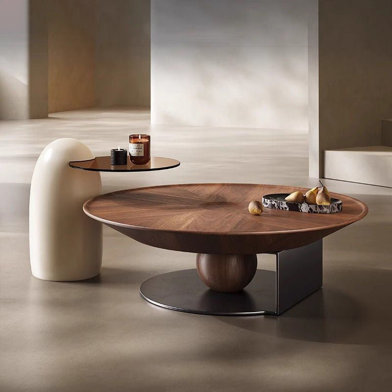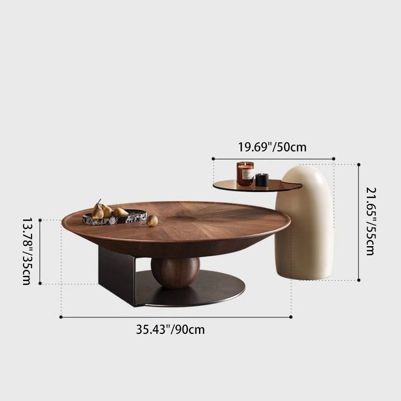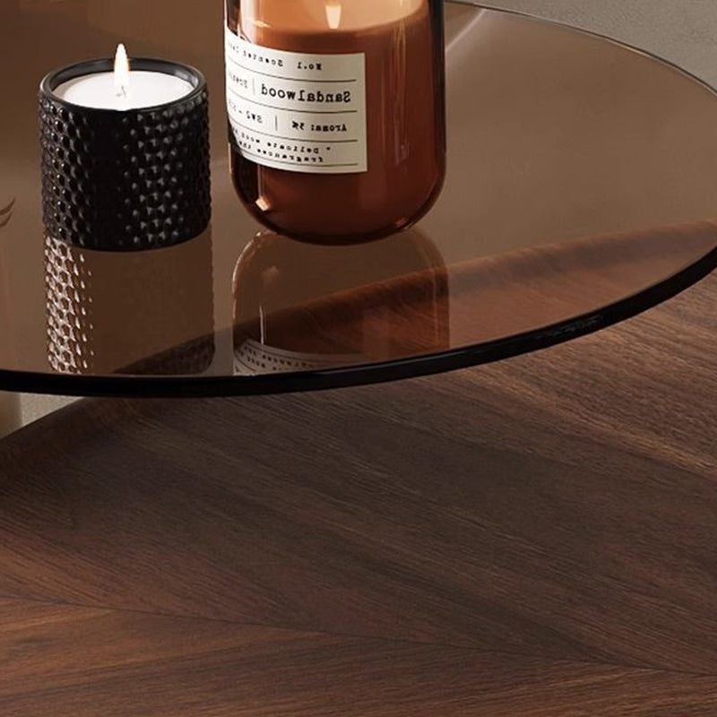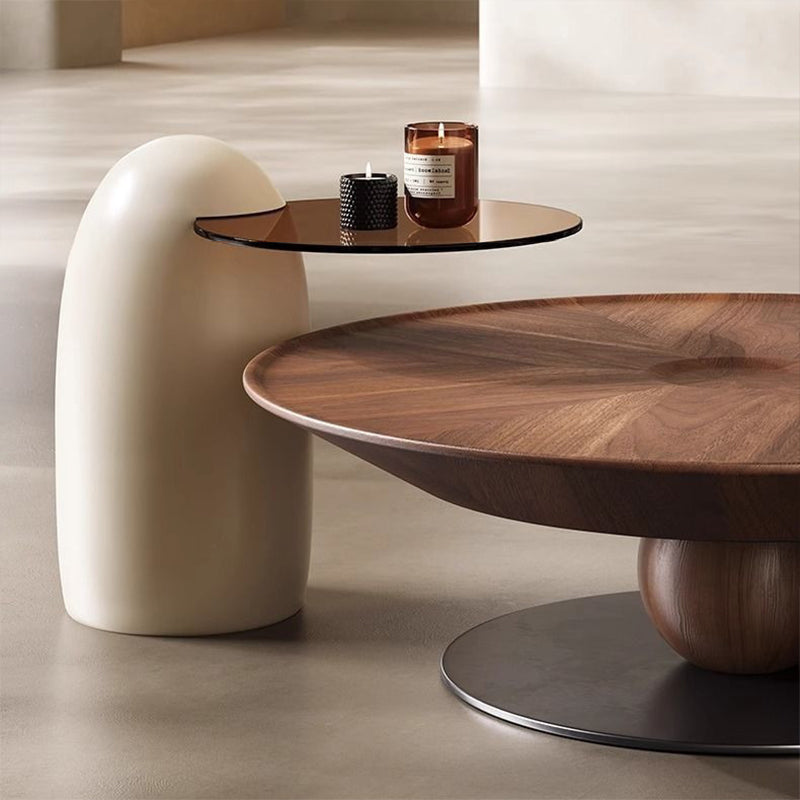 The expansive surface area of the combined tables offers ample room for entertaining, décor, and daily use, making them a functional and visually striking centerpiece. Available in refined walnut and clean cream white, this set adds a contemporary, high-end touch to any living room, seamlessly blending natural texture with modern materials. Optimized for North American consumers searching for nested round coffee table sets, tempered glass and wood-grain furniture, modern fiberglass base tables, and luxury high-low living room décor in walnut and cream finishes.