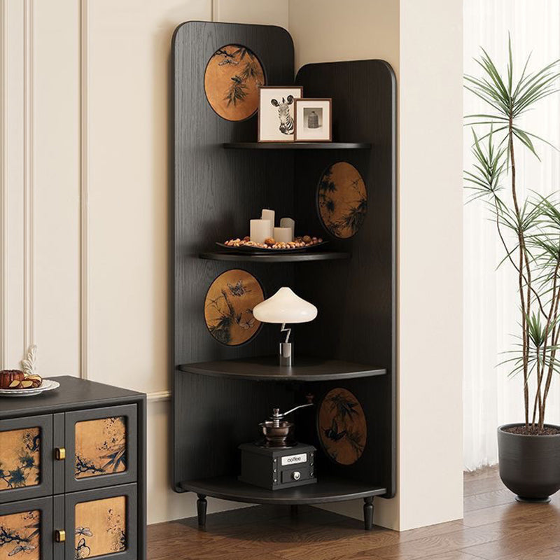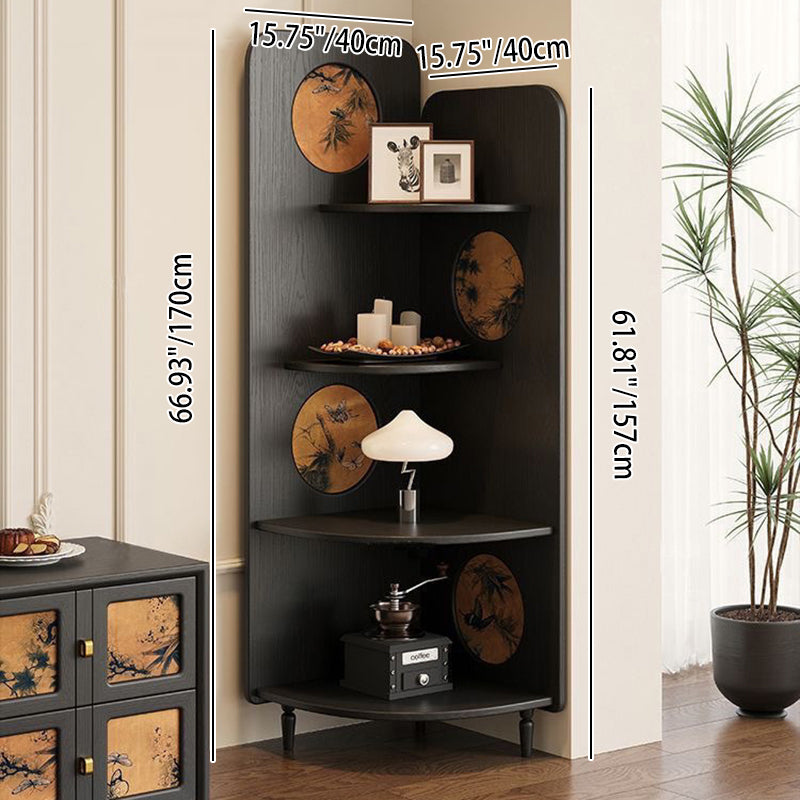 Modern Mid-century Fan-shaped Rubberwood Ash Wood Xiangyun Silk Corner Shelf Unit 4-Tier For Living Room