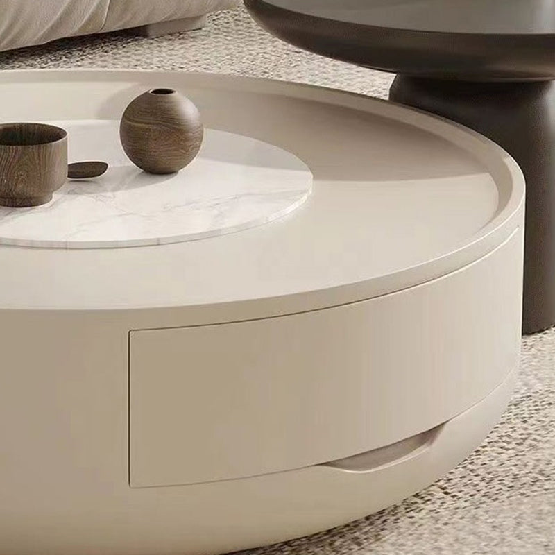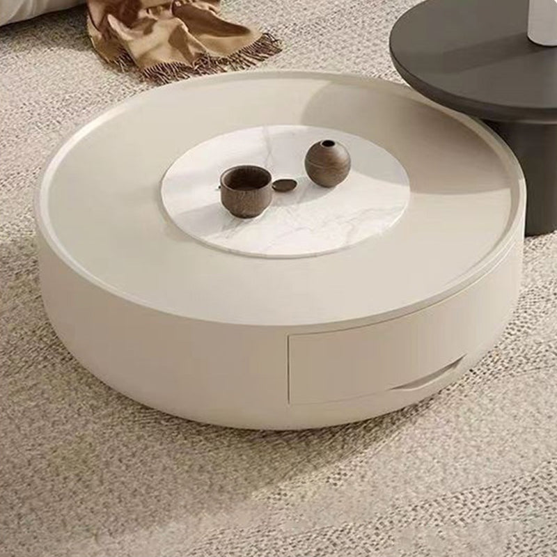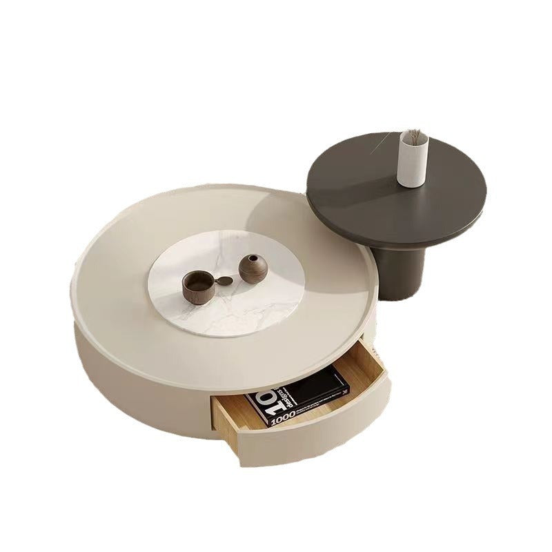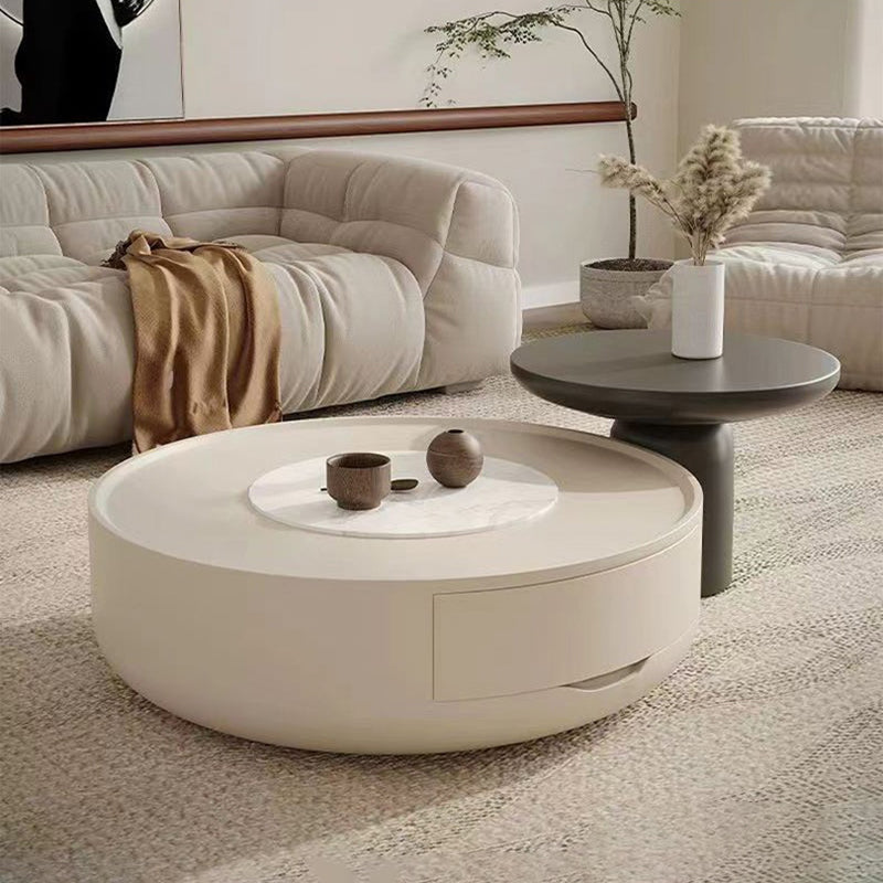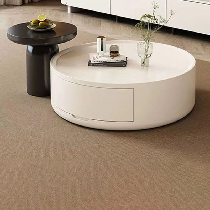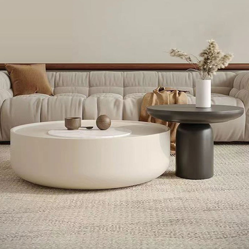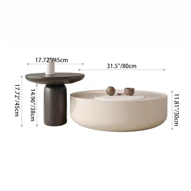 This modern minimalist coffee table features a sleek cylindrical design, expertly crafted from durable MDF and finished in clean white and black tones.