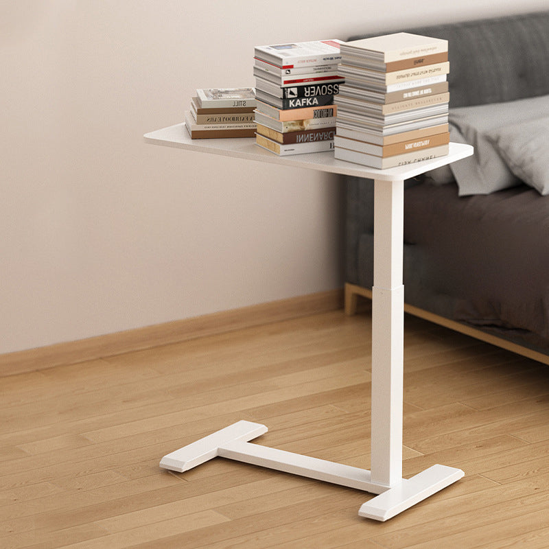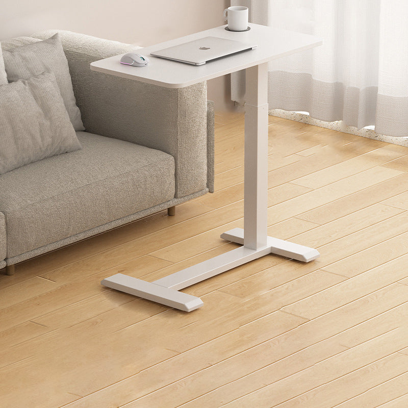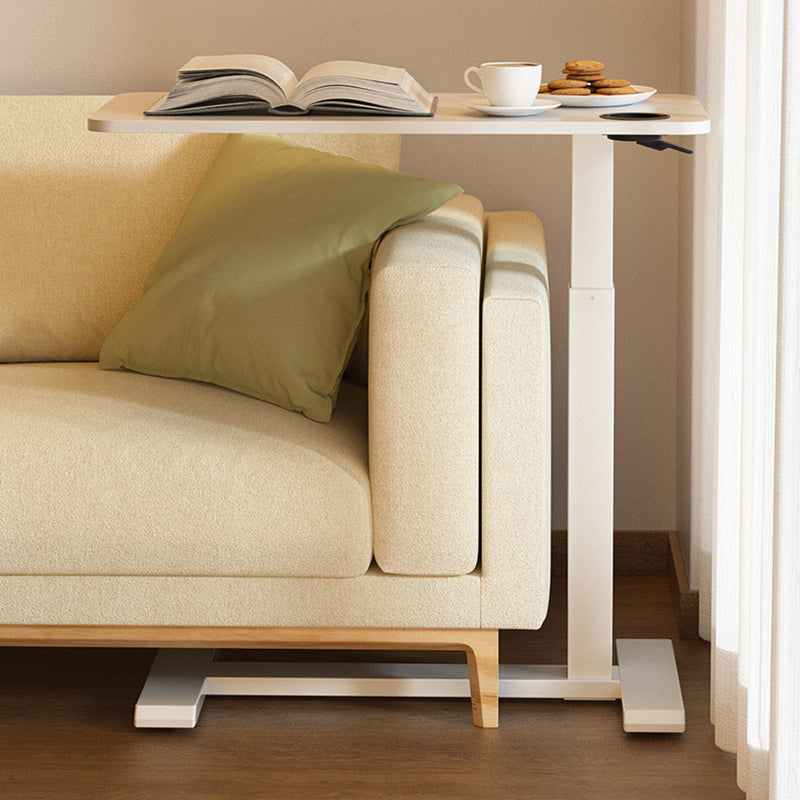 This modern minimalist side table features an engineered wood tabletop paired with a carbon steel frame, finished in a clean white tone for a refined, light luxury look. Designed with pneumatic height adjustment, it offers multi-functional use, freely adjustable height, and stable floor support without wobbling, making it ideal as a sofa-side table in the living room.