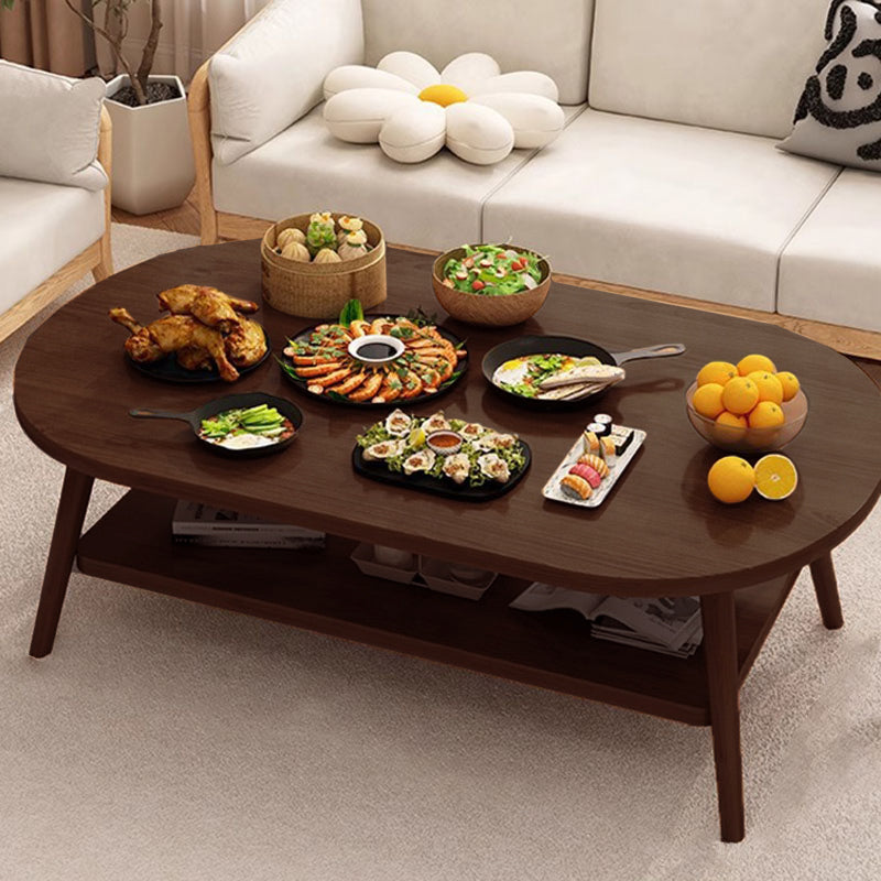 Modern Minimalist Oval Engineered Wood Solid Wood Coffee Table 2-Tier For Living Room