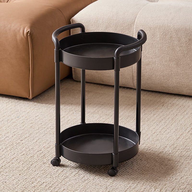 Modern Minimalist PP Plastic Round Mobile Side Table 2-Tier For Living Room