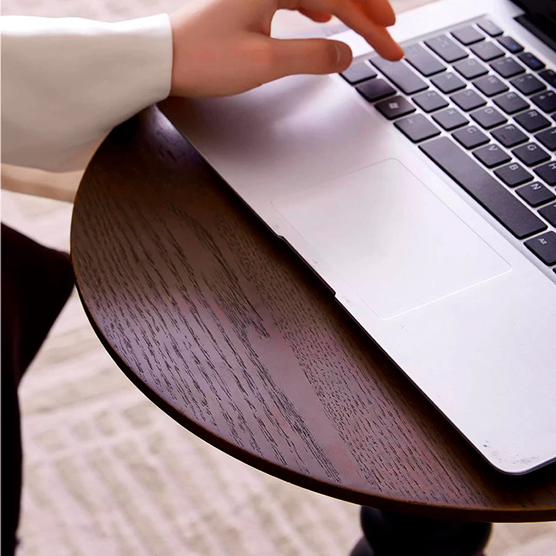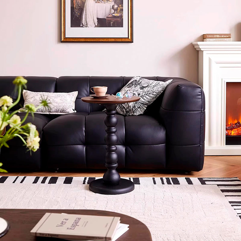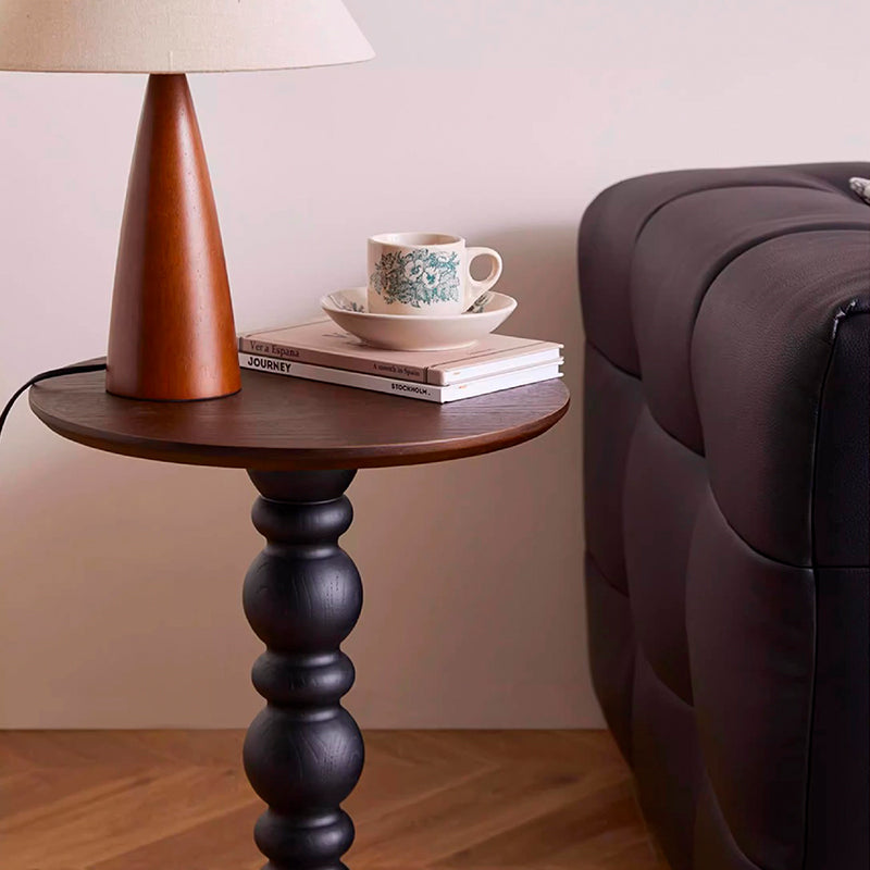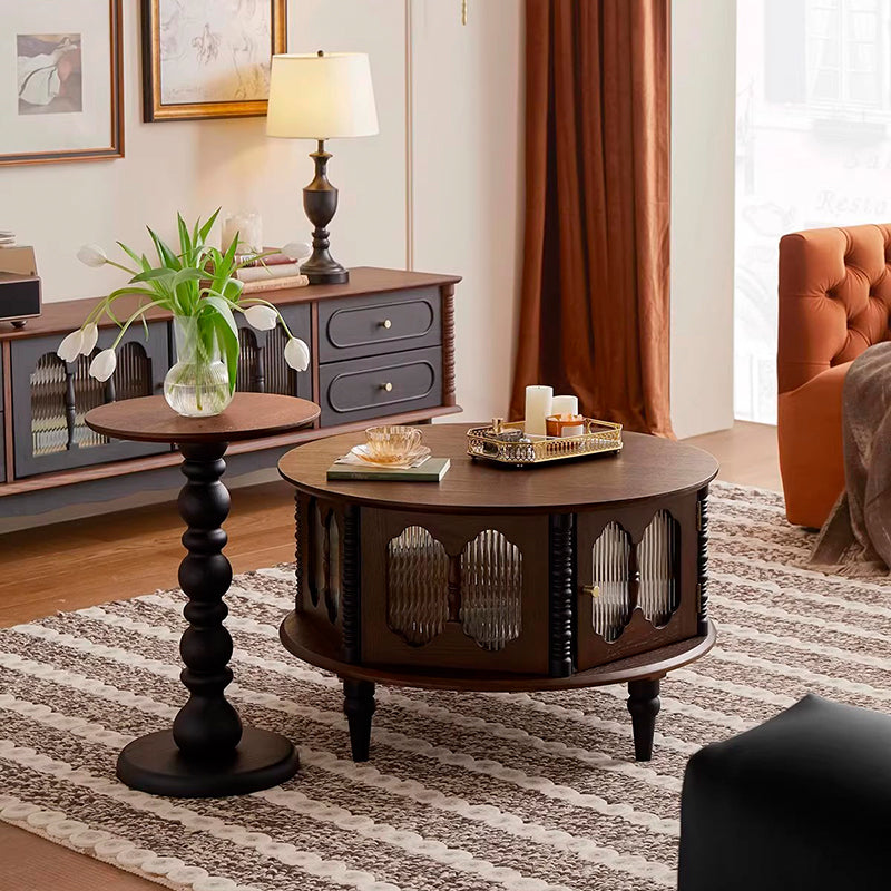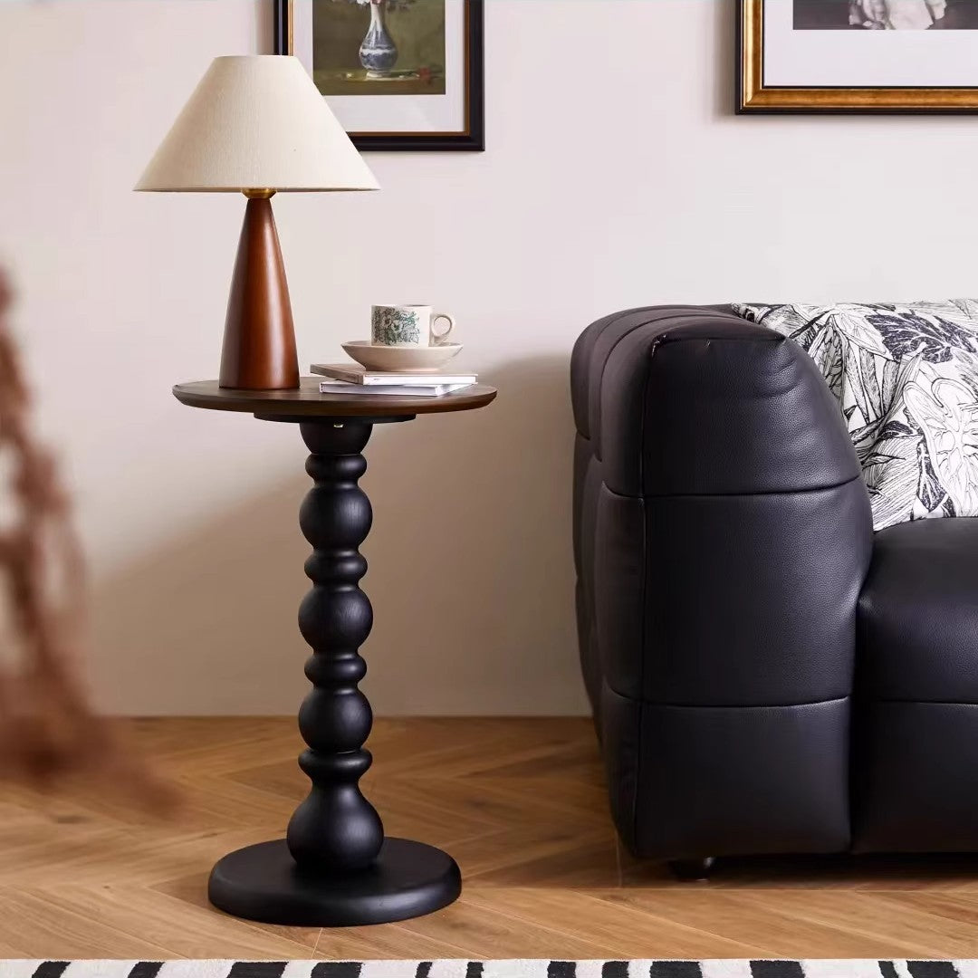 This Traditional French–style side table is crafted from solid red oak, featuring a round tabletop with an elegant Roman column base for a refined vintage look. Designed as a 1-tier accent table, it showcases wide-plank joinery craftsmanship and smoothly rounded edges, finished in brown or black, making it a perfect sofa side table or small living room accent piece for classic and luxury interiors.