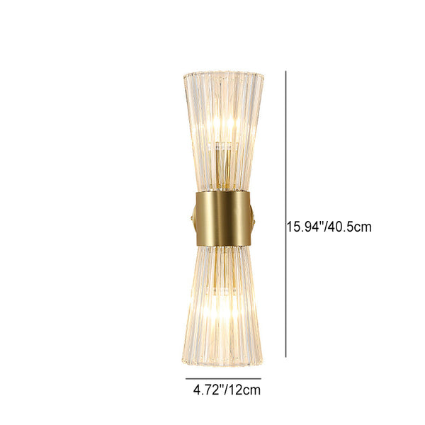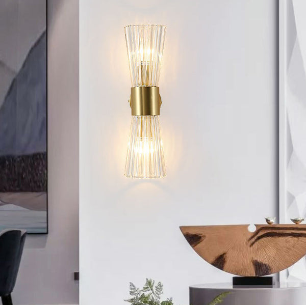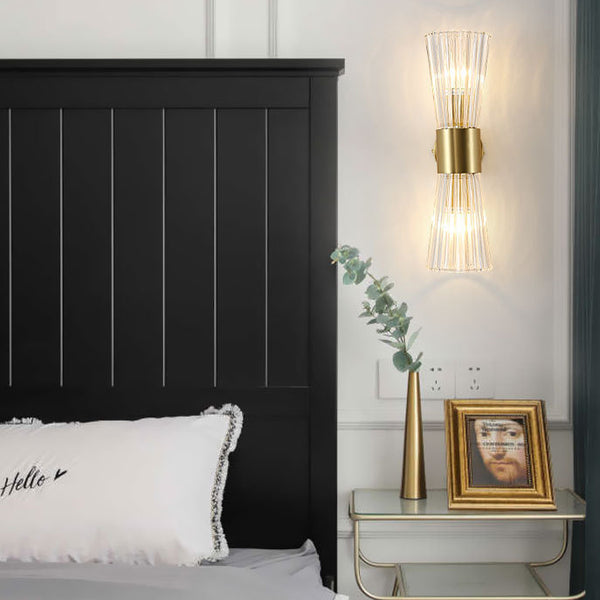 Contemporary Luxury Ribbed Crystal Up And Down Luminous 2-Light Wall Sconce Lamp For Bedroom