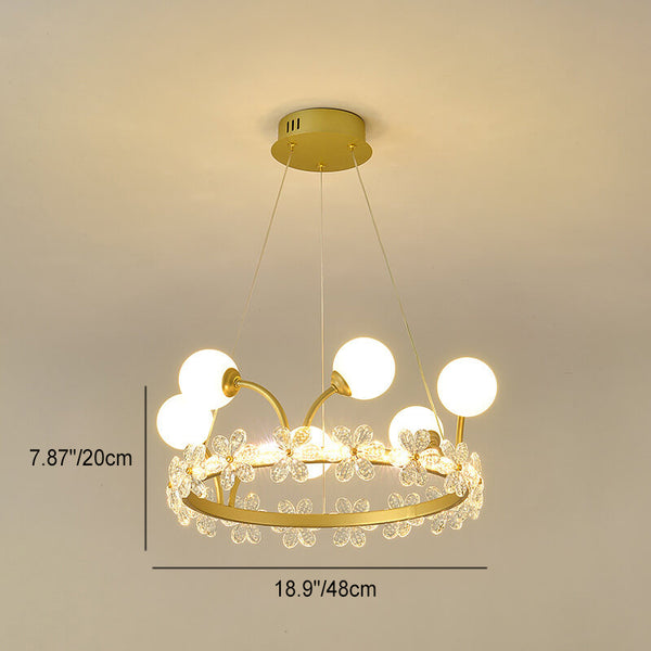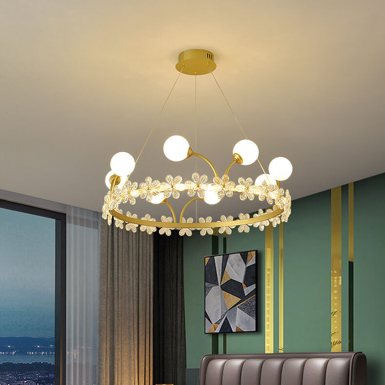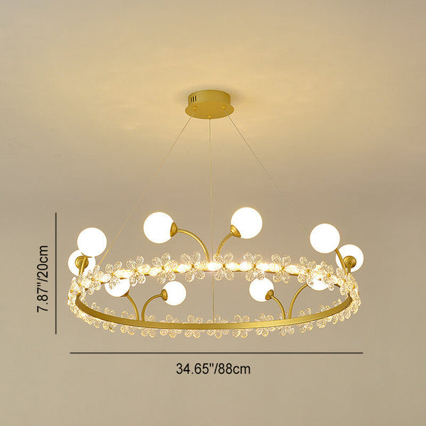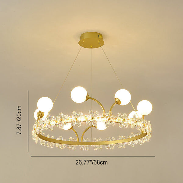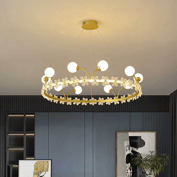 Modern Luxury Gold Finish Frame Crystal Flower Edging 6/8/10-Light Chandelier For Living Room