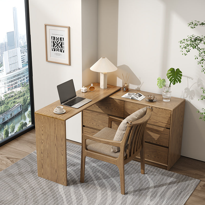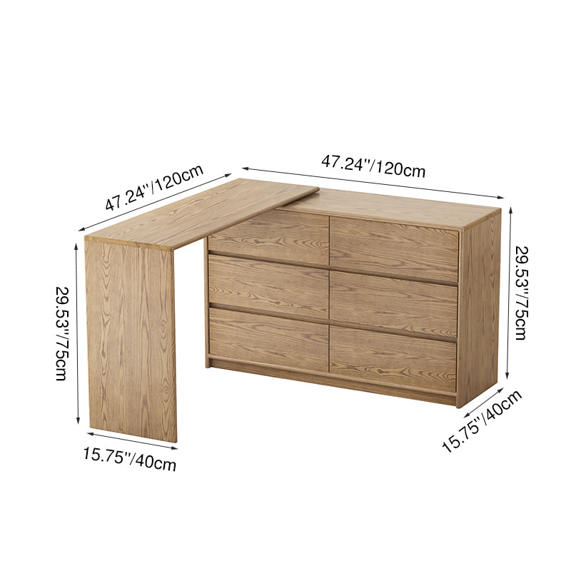 Modern Minimalist Solid Ash Wood Modular Desk With 6-Drawer Storage Cabinet For Home Office & Bedroom