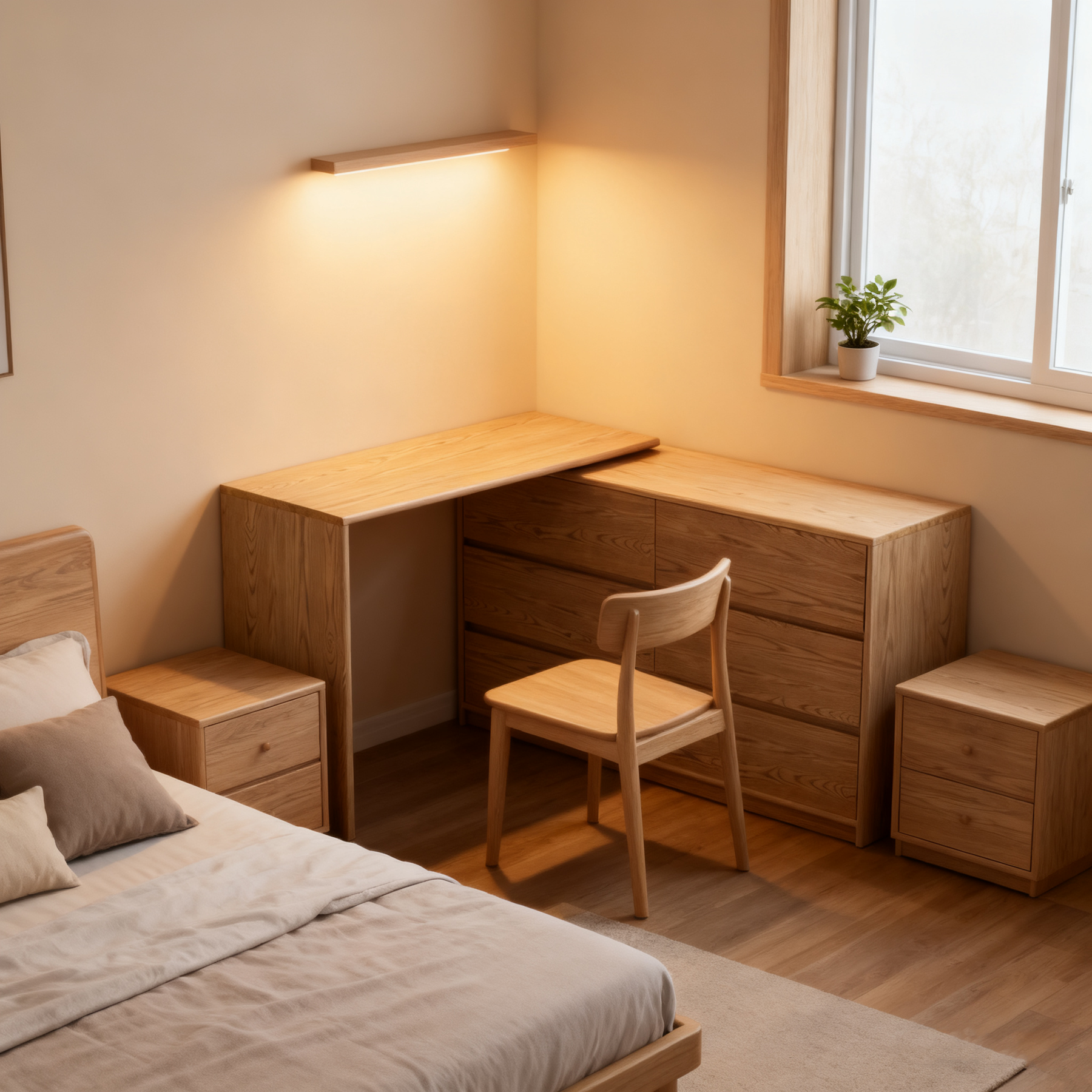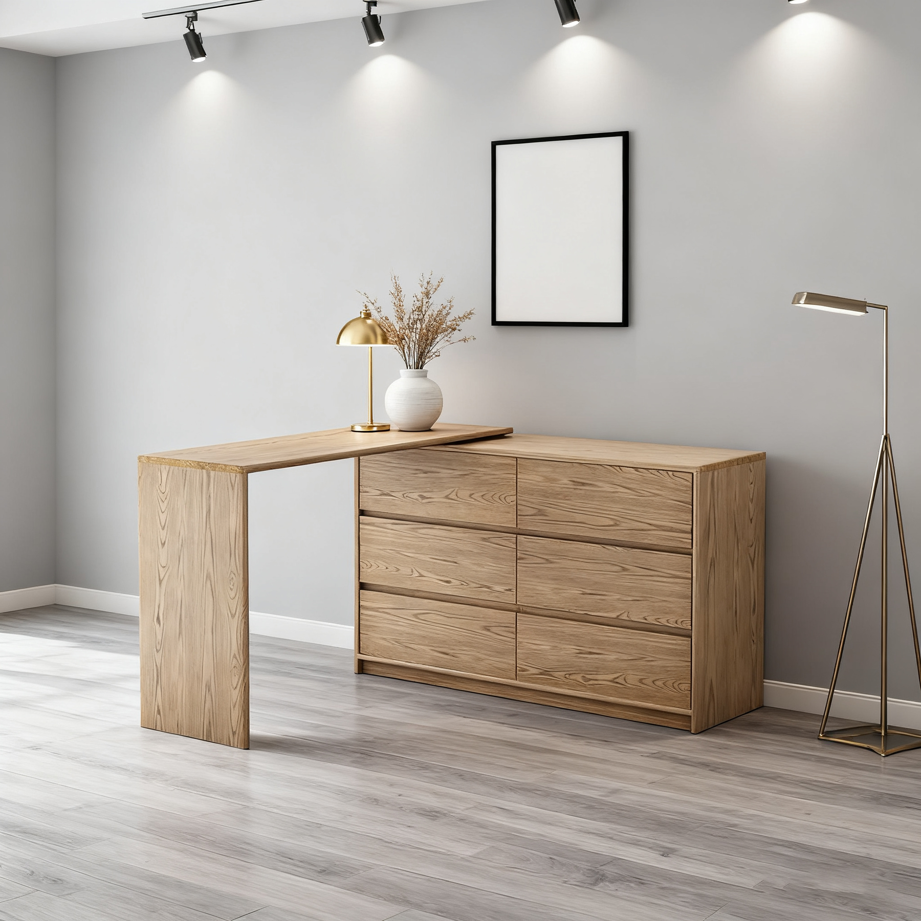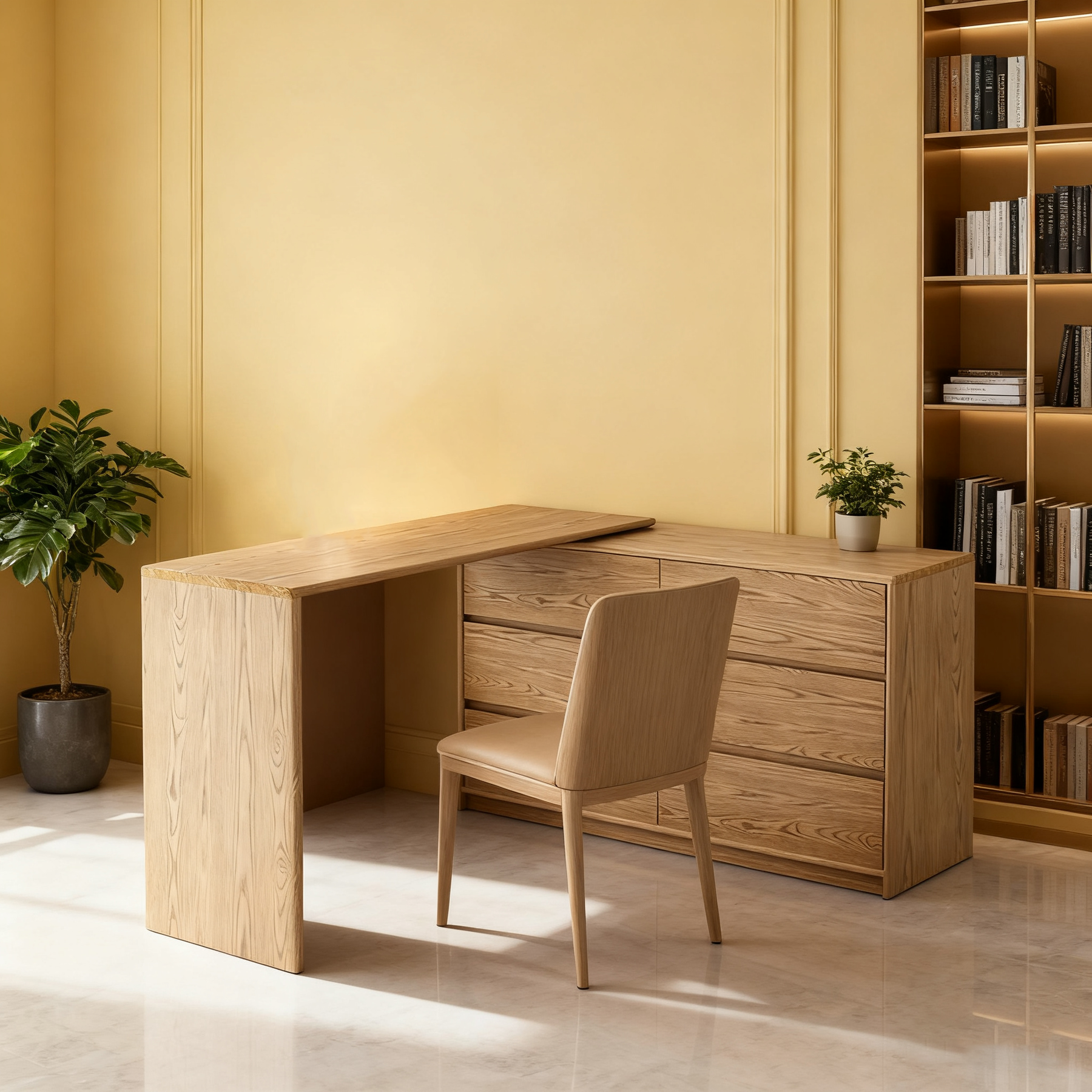 This modern minimalist solid ash wood modular desk brings together natural warmth and refined craftsmanship. Designed with a freely adjustable desk + storage cabinet combination, it adapts effortlessly to your room layout—whether in a dedicated home office or a cozy bedroom corner.