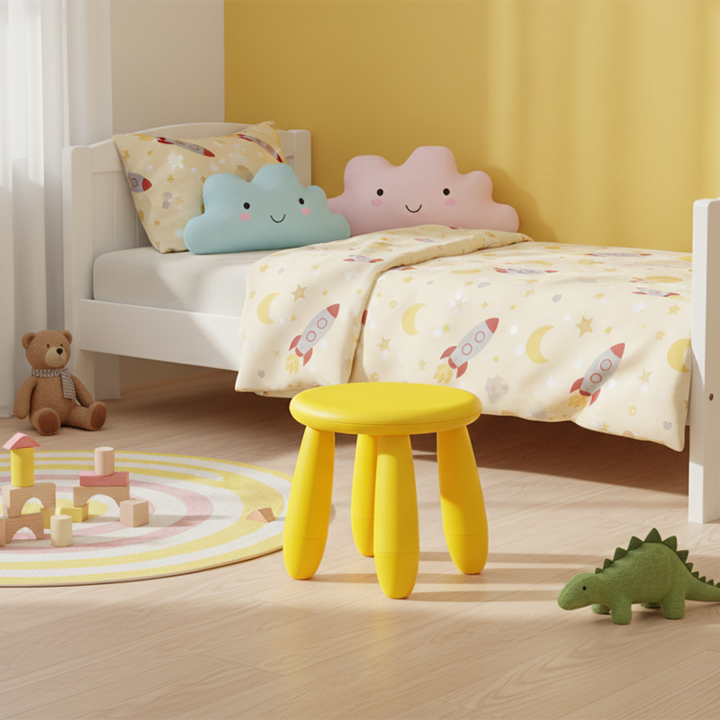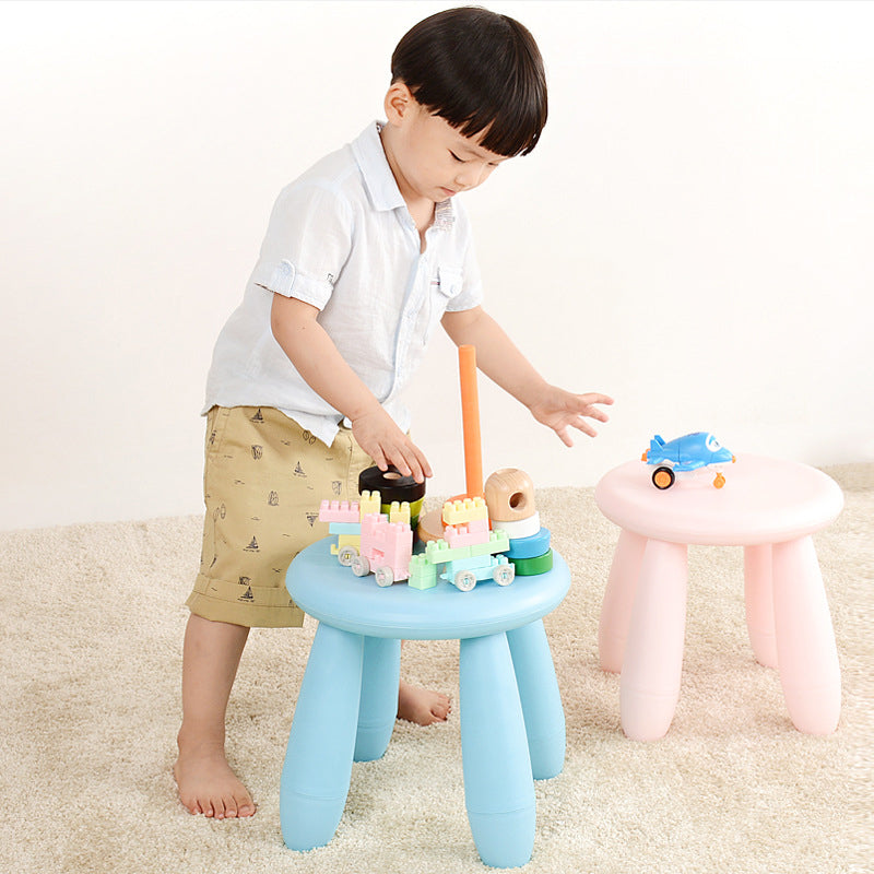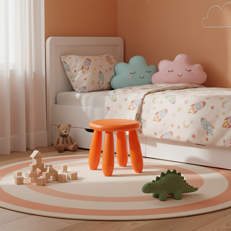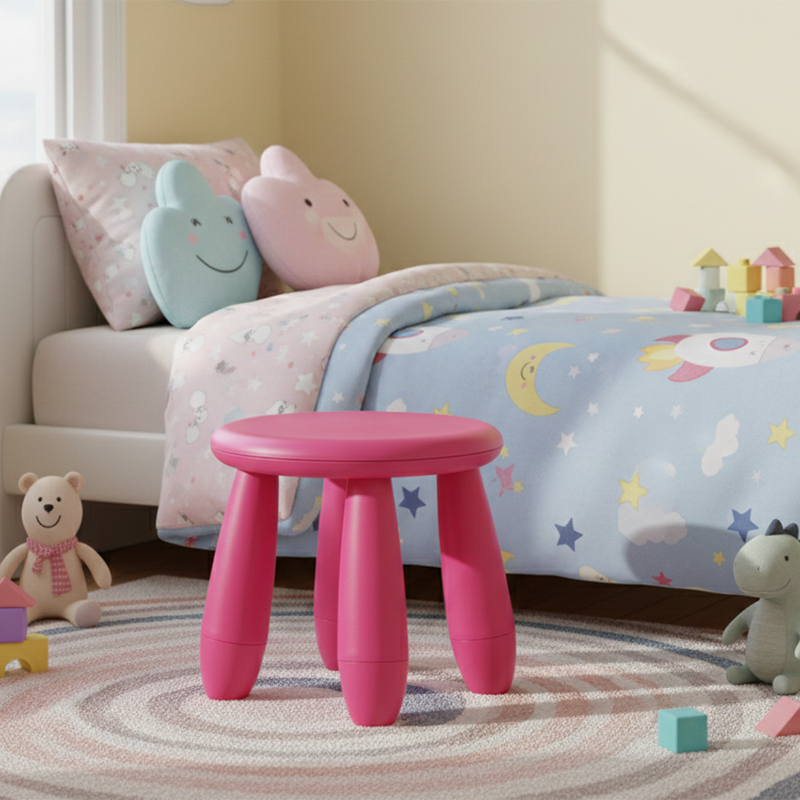 Bring a touch of playful sophistication to your home with this modern minimalist kids' stool. Featuring a rounded cylindrical shape and a supportive backrest, it is thoughtfully designed for safe and comfortable everyday use. Crafted from eco-friendly PP material, the stool combines anti-slip stability with a strong weight capacity, while smooth rounded edges ensure peace of mind for parents. Available in a delightful array of soft and vibrant colors—including magenta, green, yellow, white, light blue, light pink, and orange—it is the perfect addition to living rooms and play areas.