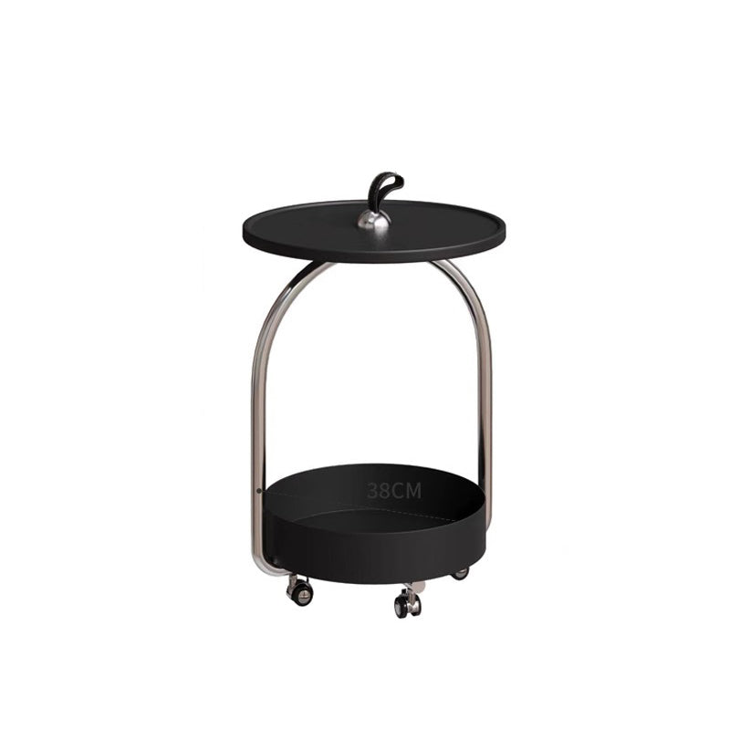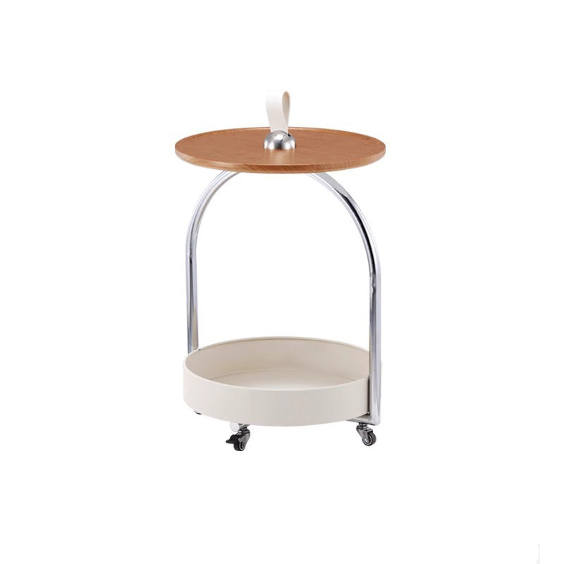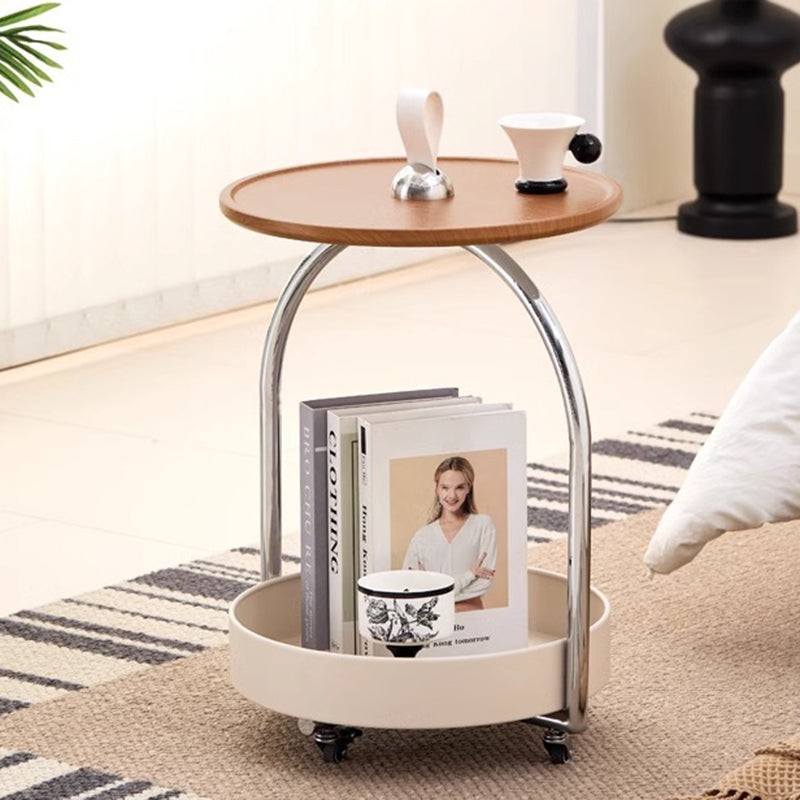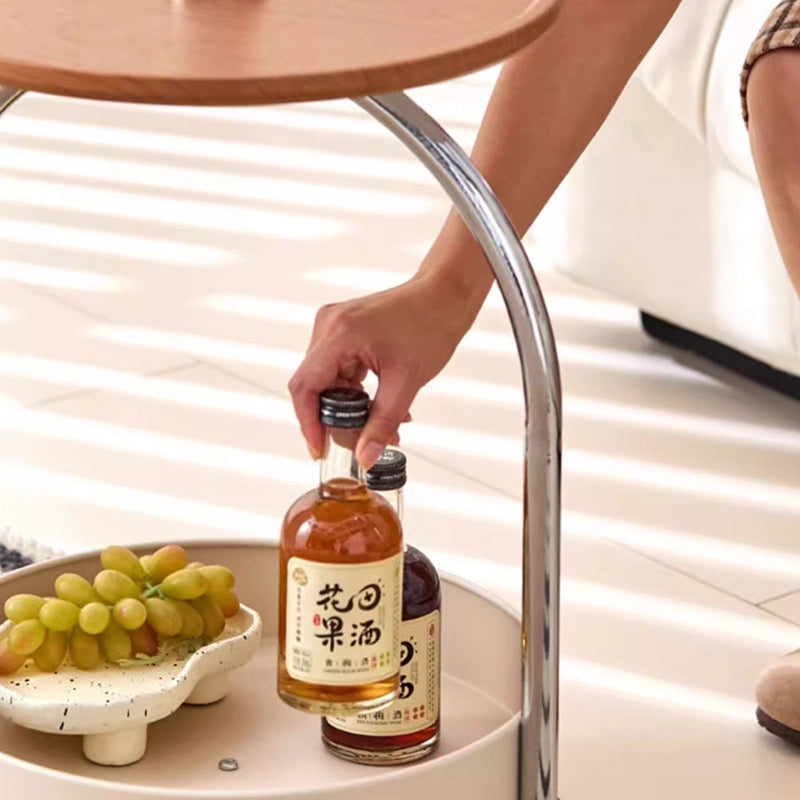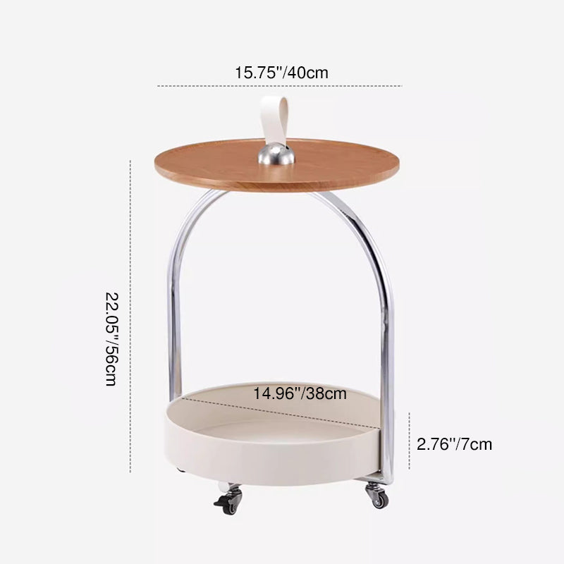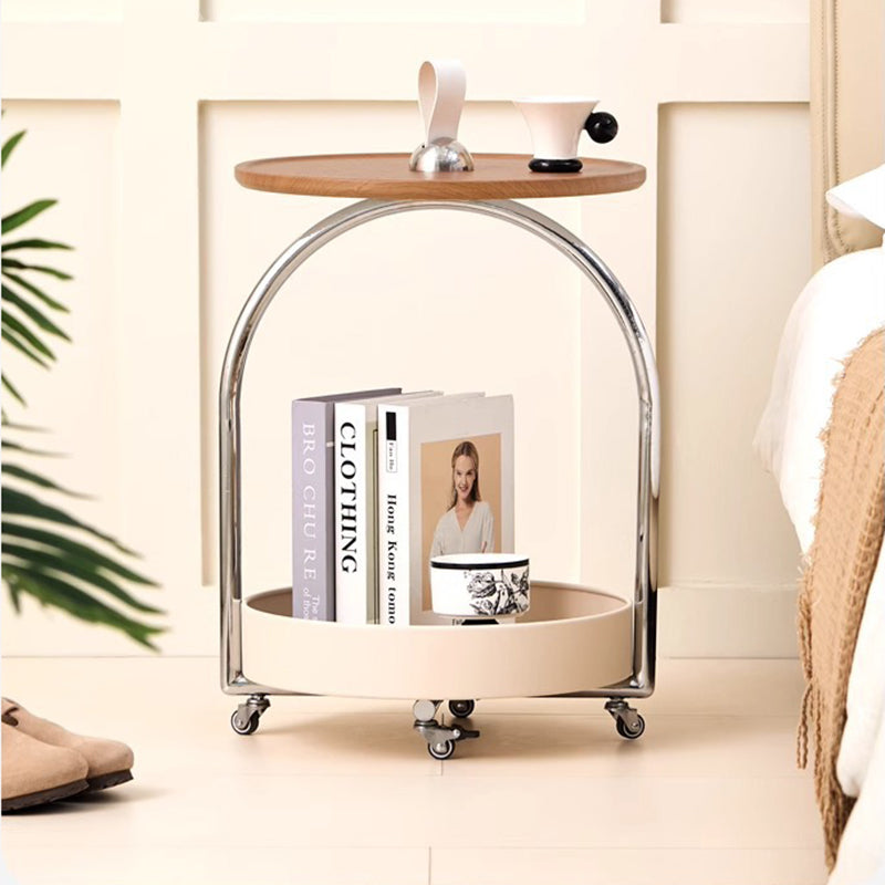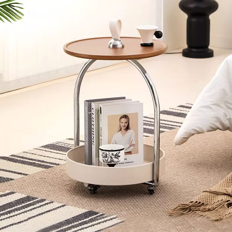 This modern minimalist side table combines a durable metal frame with smooth wood panels, featuring a portable round curved design that’s easy to move. The two-tier open storage structure and anti-slip tabletop make it ideal for holding drinks, books, or décor in white or black finishes—perfect for stylish living rooms.