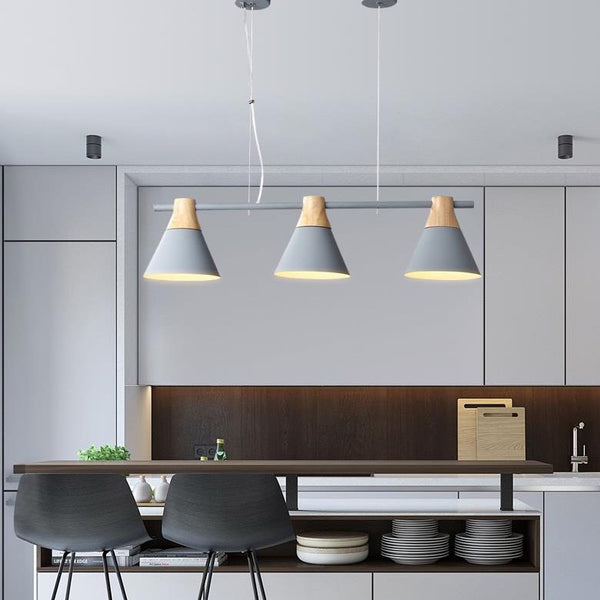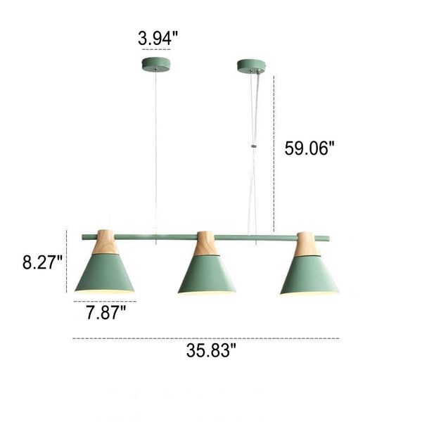 Nordic Macaron Cone Shade Wood Top 3-Light Chandelier