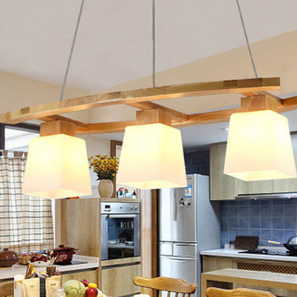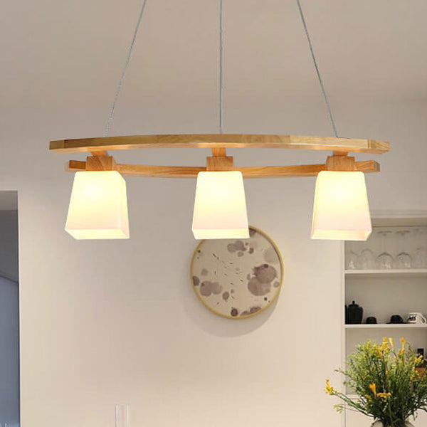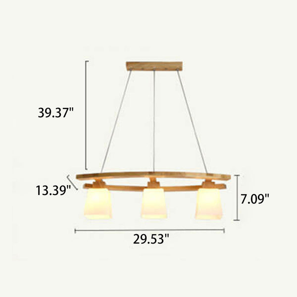 Nordic Minimalist Solid Wood Glass Island Light 3-Light Chandelier