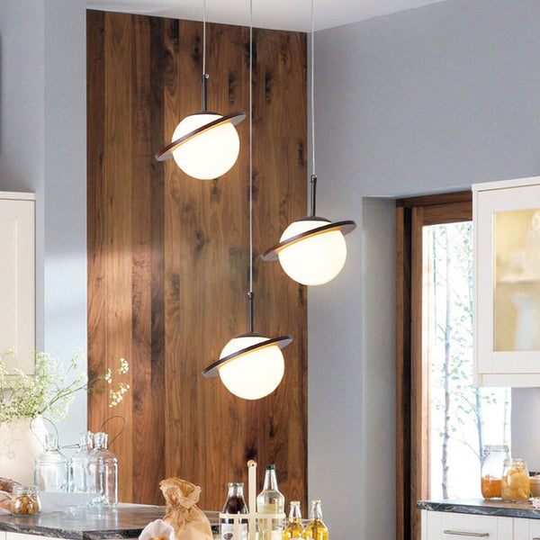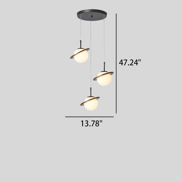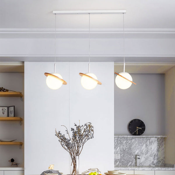 Nordic Wooden Planet Milk White Glass 1/3 Light Chandelier
