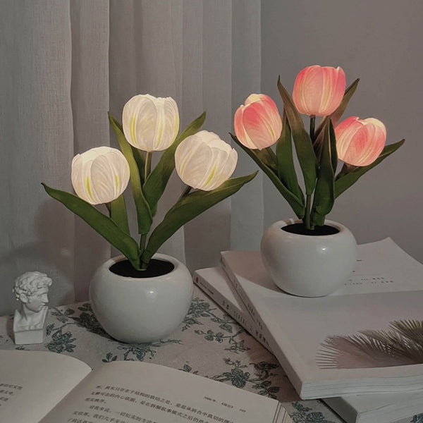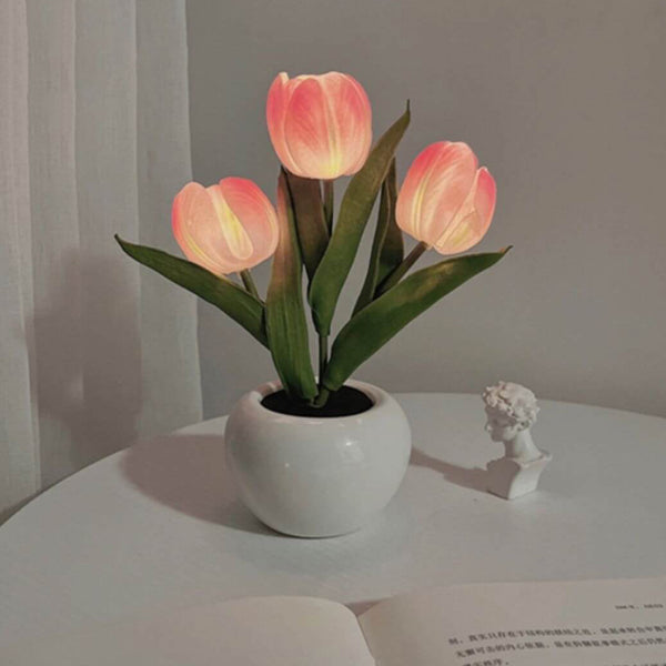 Tulip Simulation Bouquet Ceramic Flower Pot LED Night Light Table Lamp