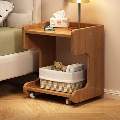 Modern Minimalist Square Nan Bamboo Movable Nightstand 2-Tier For Bedroom