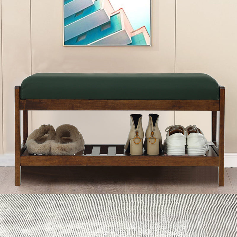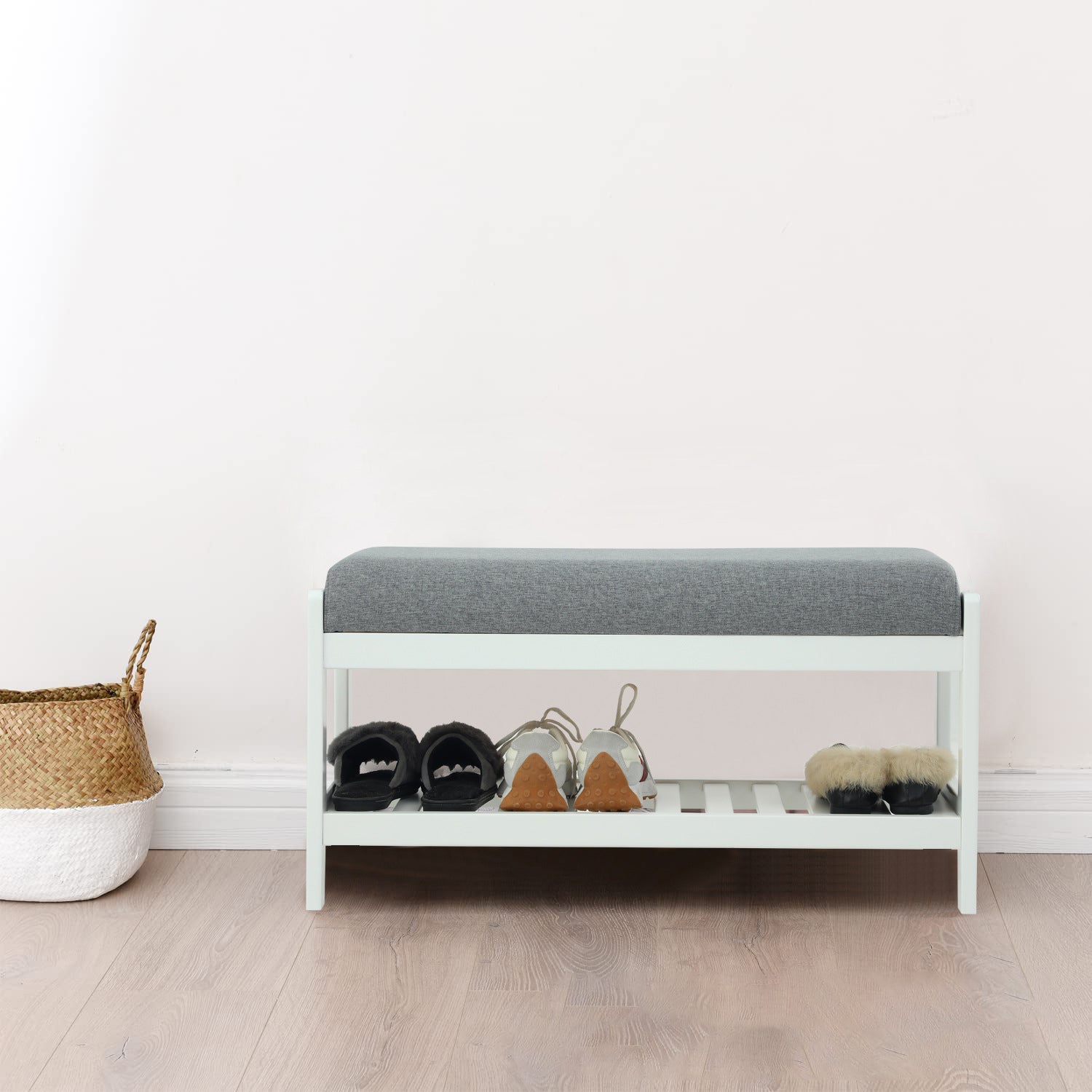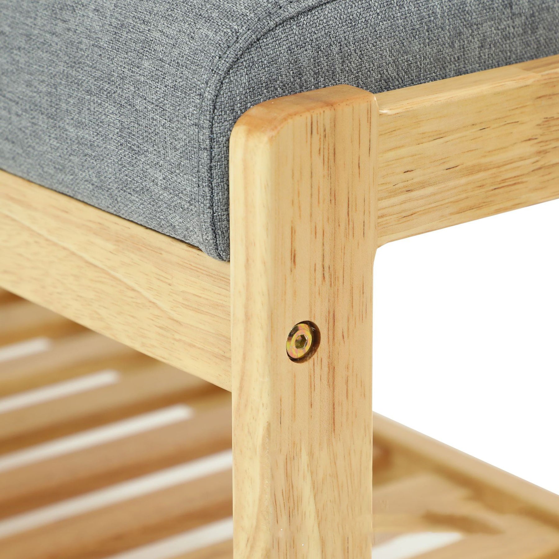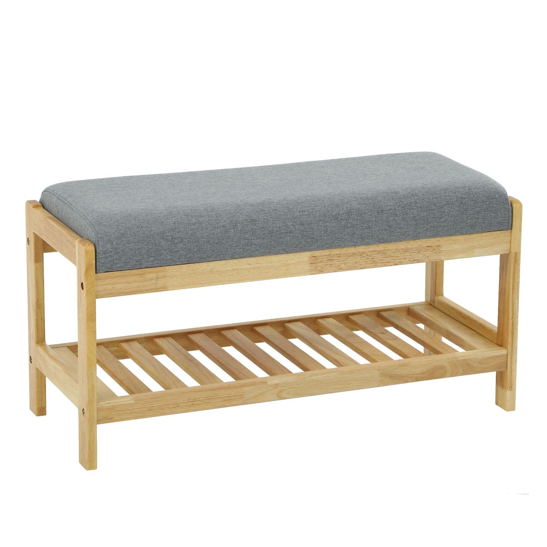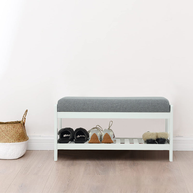 Contemporary Scandinavian Fabric Pine Rectangular Shoe Bench With 1 Shelf For Living Room