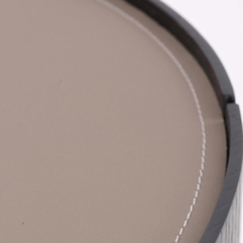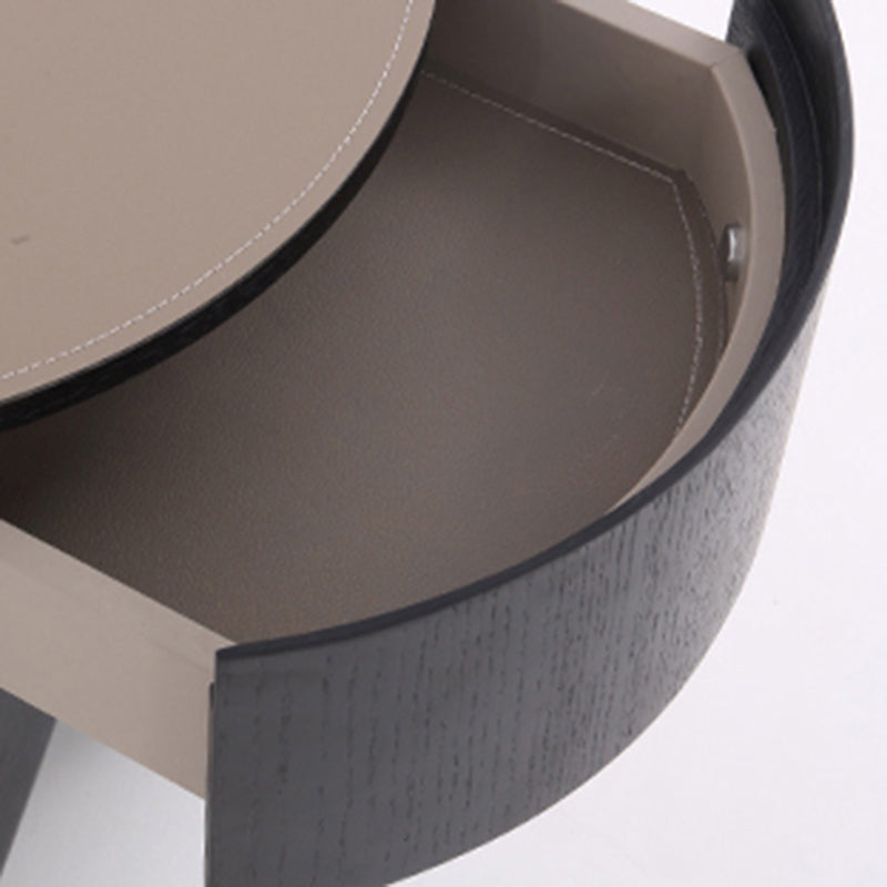 This contemporary industrial-style round nightstand anchors bedroom charm with texture: its countertop features a selected saddle leather finish, boasting a delicate touch and a sophisticated vibe; the cabinet body is crafted from high-quality solid wood multi-layer board, merging sturdiness with long-lasting durability; the solid wood drawer glides smoothly without jamming, streamlining daily item access. Made with eco-friendly, non-toxic materials, it ensures a safe bedroom environment; paired with metal cabinet legs, it’s corrosion-resistant, easy to maintain, and offers stable support ---blending practicality and aesthetics right beside your bed.