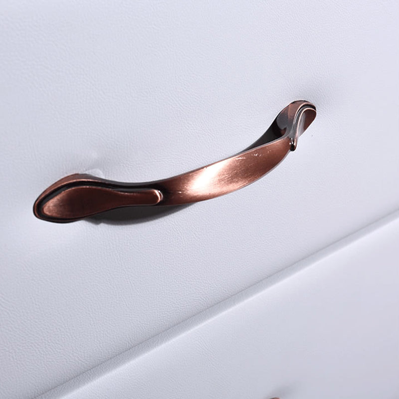 Modern Soft Ivory Faux Leather Bedside Cabinet - Gold Metal Pulls Nightstand With 3 Drawers For Bedroom