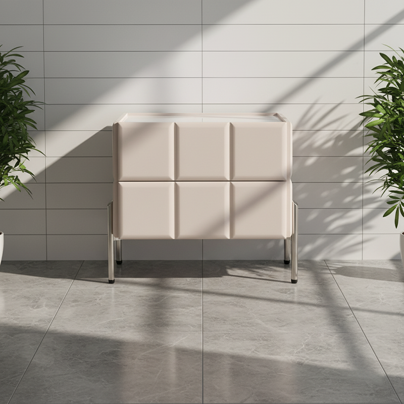 Introduce a touch of Scandinavian sophistication and unique texture to your bedroom with this exquisite cream white two-drawer nightstand. It features a distinctive 3D chocolate-block embossed design that immediately adds compelling visual depth and modern artistry to any interior. The durable sintered stone top provides a robust, scratch-resistant surface ideal for daily use, while the construction from E1-grade eco-friendly MDF and sleek stainless steel legs ensures long-lasting functionality. This piece seamlessly combines elegant style with premium durability, making it the ideal accent for modern, minimalist, or Scandinavian-inspired spaces.