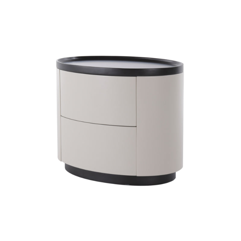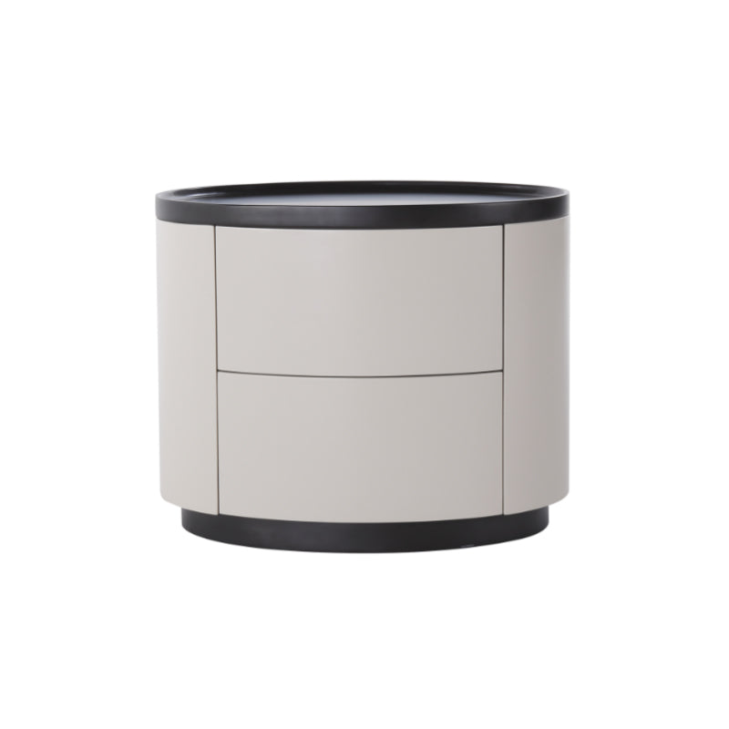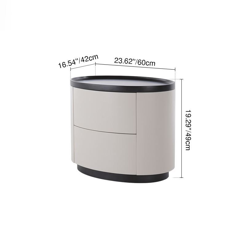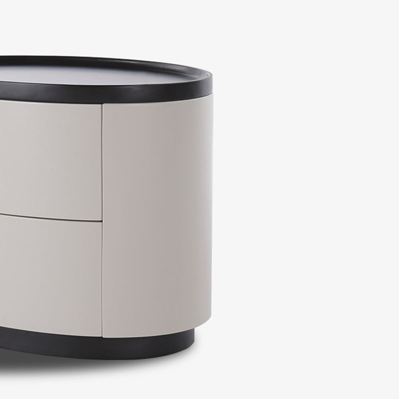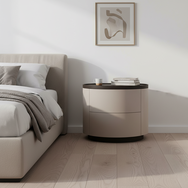 The gentle texture of modern minimalism is fully contained in this rounded nightstand. The smooth circular contour paired with soft tones softens the sharpness of the space, making the bedroom atmosphere more relaxed; the cabinet combines solid wood multi-layer board and E1-grade eco-friendly MDF, which not only ensures the sturdiness and durability of multi-materials but also meets the healthy and pollution-free home standard, fitting daily living with peace of mind. The double drawers are equipped with smooth tracks, opening and closing quietly without jamming, allowing neat storage of bedside books and small items; the minimalist appearance has no redundant decorations, yet its delicate texture supports the minimalist style of modern bedrooms. Place it by the bed, and every use echoes comfort and practicality.