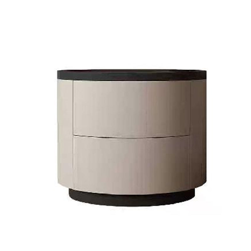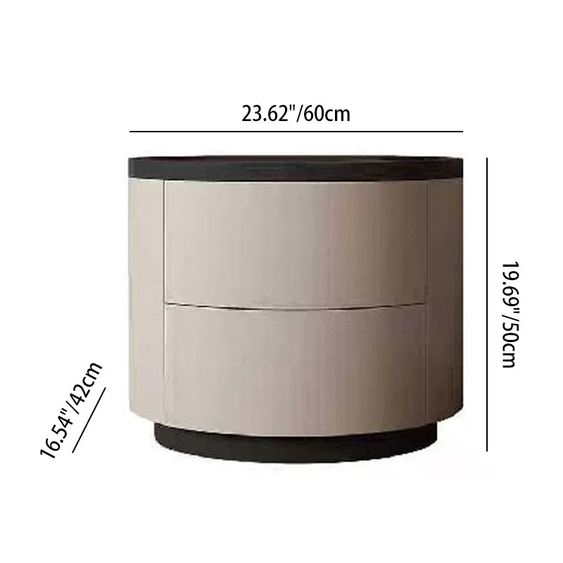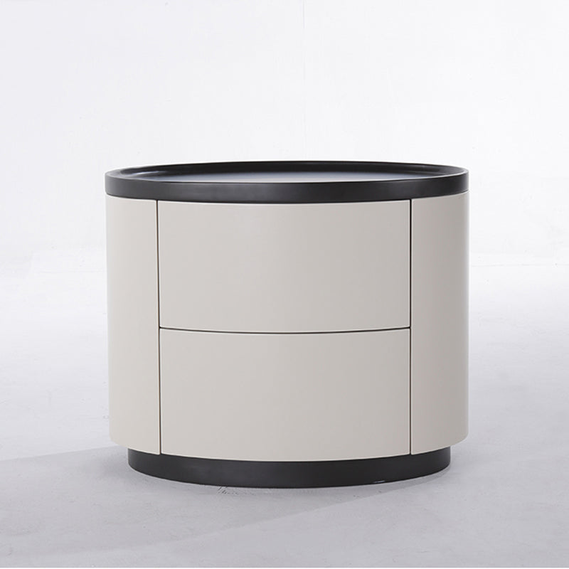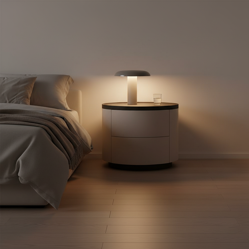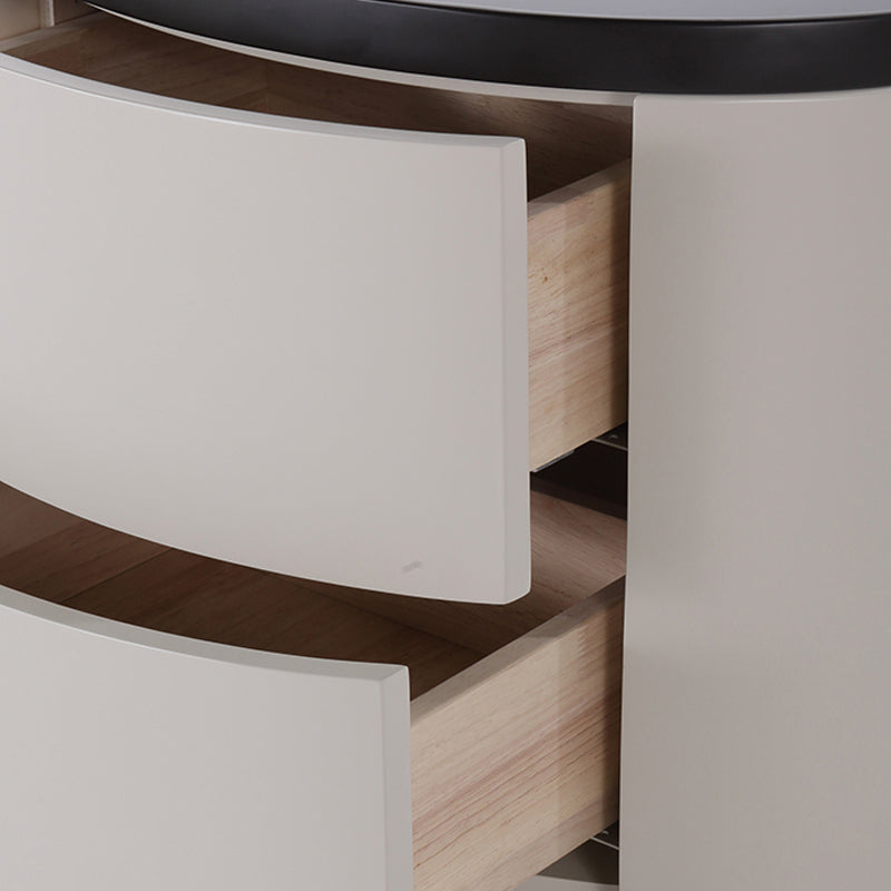 The gentle texture of modern minimalism is fully contained in this rounded nightstand. The smooth circular contour paired with soft tones softens the sharpness of the space, making the bedroom atmosphere more relaxed; the cabinet combines solid wood multi-layer board and E1-grade eco-friendly MDF, which not only ensures the sturdiness and durability of multi-materials but also meets the healthy and pollution-free home standard, fitting daily living with peace of mind. The double drawers are equipped with smooth tracks, opening and closing quietly without jamming, allowing neat storage of bedside books and small items; the minimalist appearance has no redundant decorations, yet its delicate texture supports the minimalist style of modern bedrooms. Place it by the bed, and every use echoes comfort and practicality.