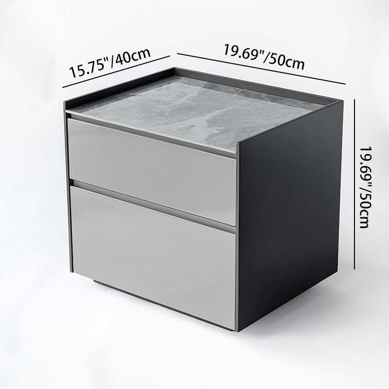 Modern Minimalist Solid Wood Plywood Nightstand With Sintered Stone Top - 2-Drawer Bedside Table For Bedroom