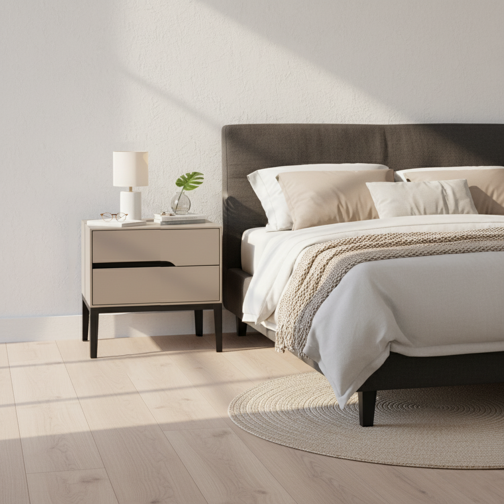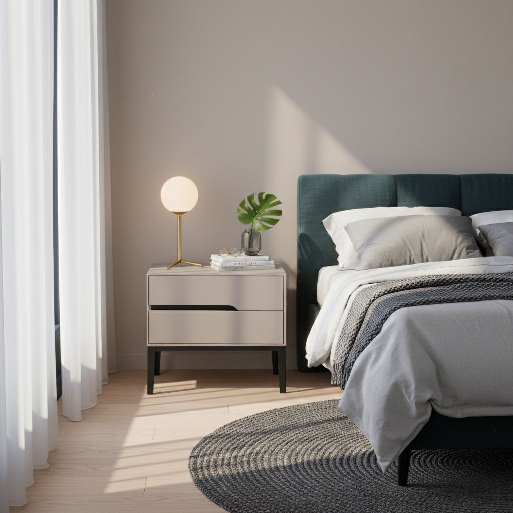Clean geometric shape that fits seamlessly into modern minimalist bedroom styles.
