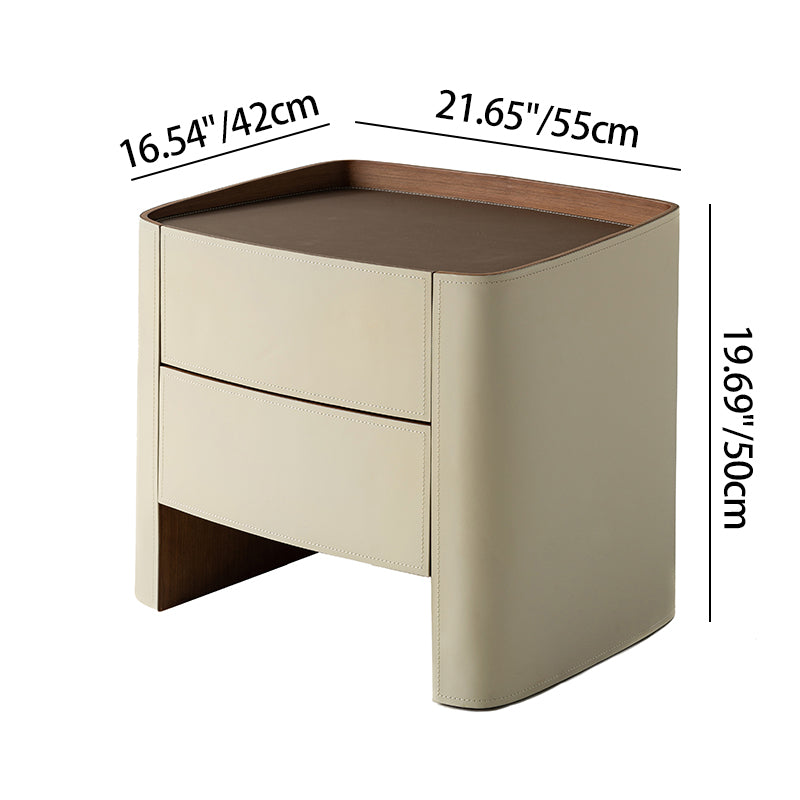 Timeless French Elegance Faux Leather Nightstand - Premium Dual Materials & Silky-Smooth Large 2-Drawer Bedside Table For Bedroom
