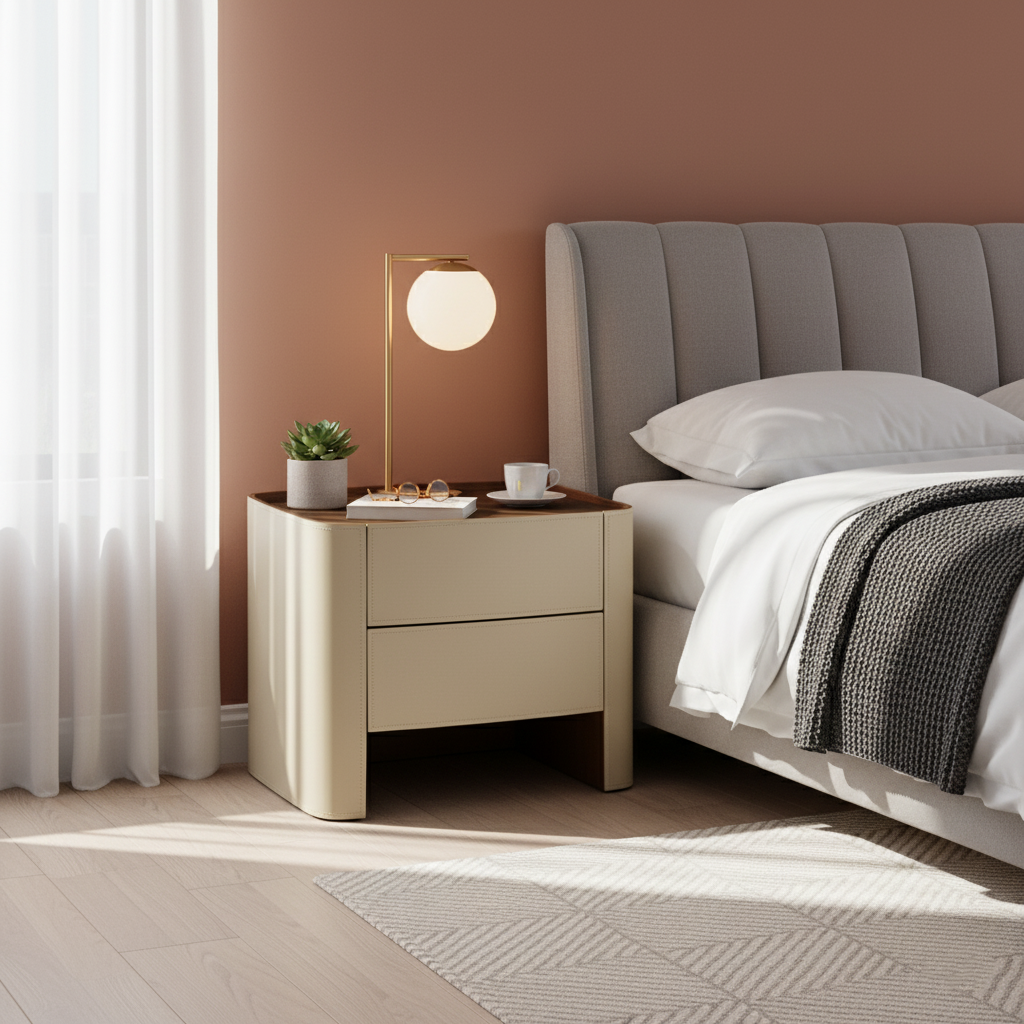 This nightstand, crafted with traditional French design, exudes the charm of elegant living. The cabinet body offers two options: solid wood multi-layer board or E1 eco-friendly MDF. For the finish, you can choose faux leather or textured saddle leather, balancing texture and sophistication. It has two large-capacity drawers that glide smoothly without jamming, neatly storing daily trivialities. Made of selected hard and high-quality materials, it is eco-friendly, healthy & pollution-free, infusing French romance into daily life.