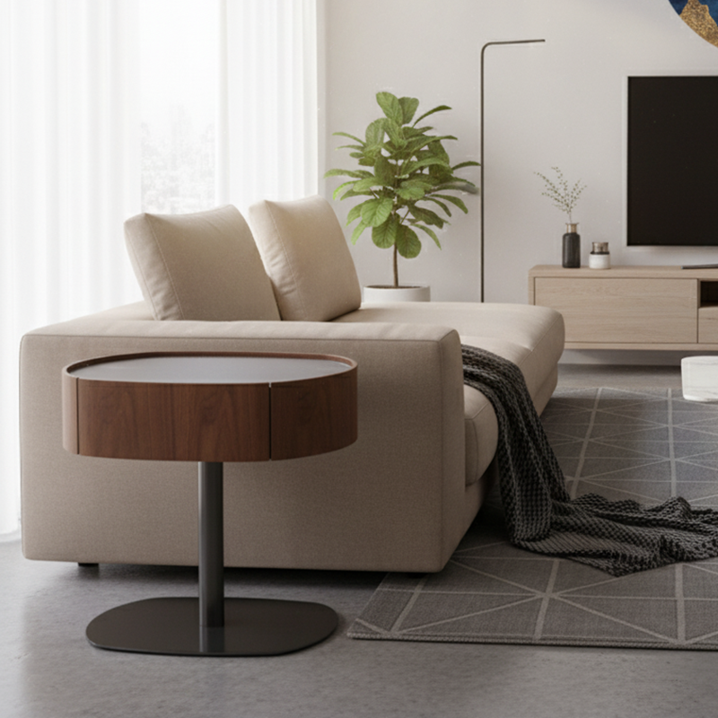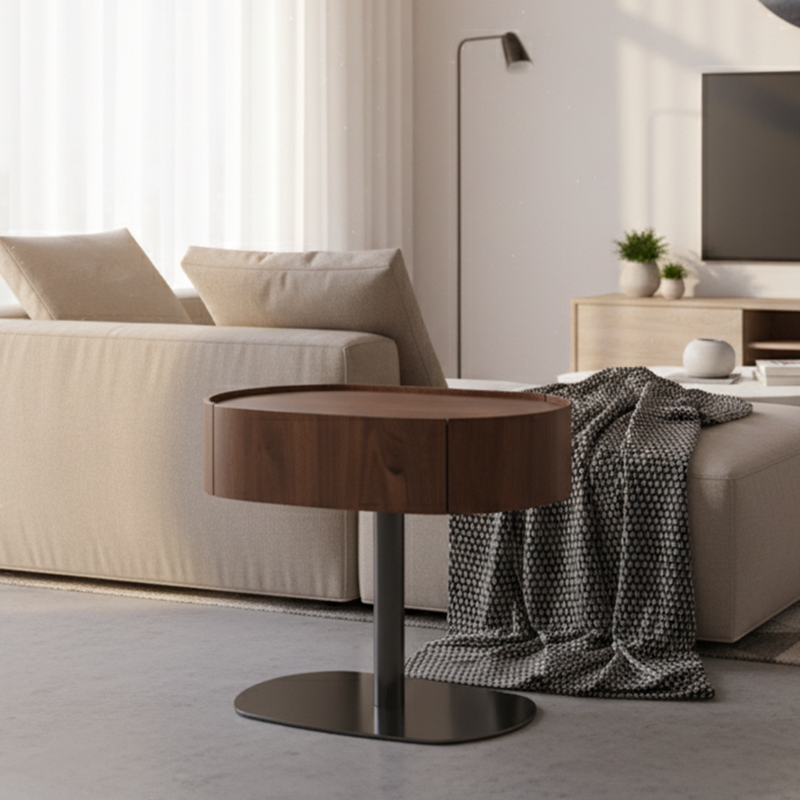 Modern walnut side table with premium materials.