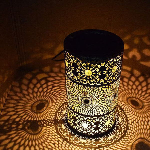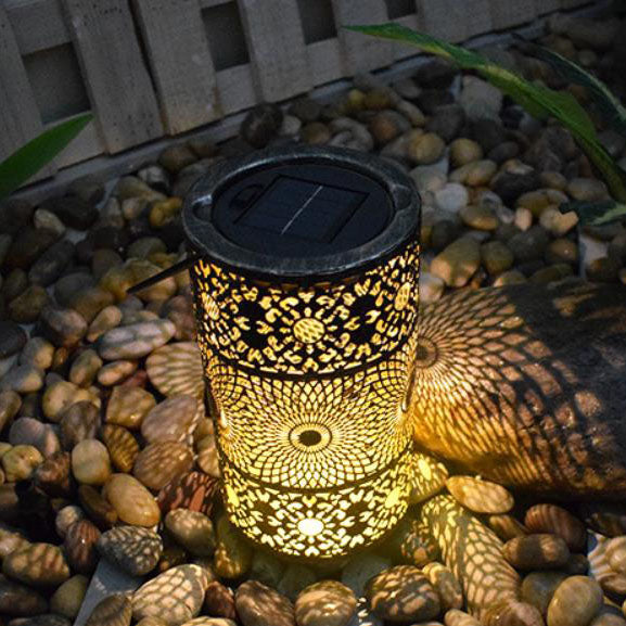 Solar Retro Iron Lantern Hollow Outdoor Decorative Camping Landscape Light