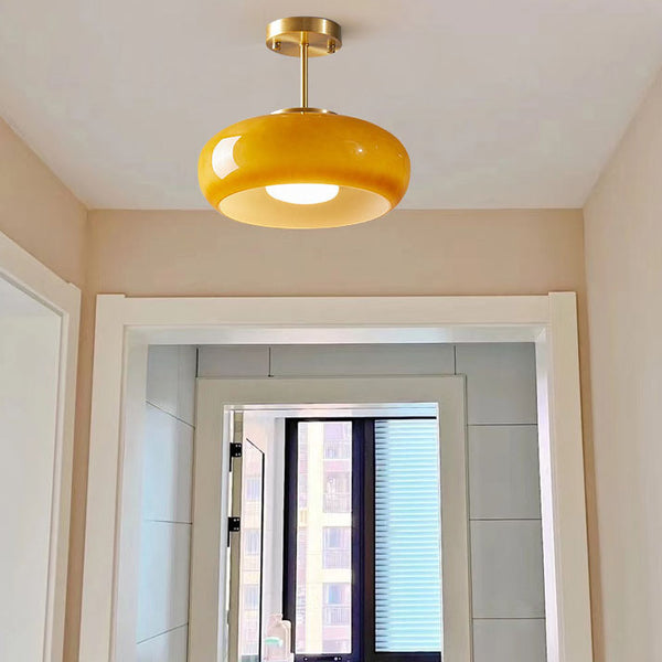 Contemporary Scandinavian Iron Spherical Glass Shade 1-Light Semi-Flush Mount Ceiling Light For Hallway