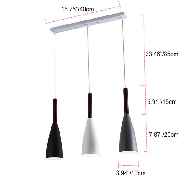 Contemporary Scandinavian Round Tapered Wooden Iron 3-Light Island Light Chandelier For Dining Room