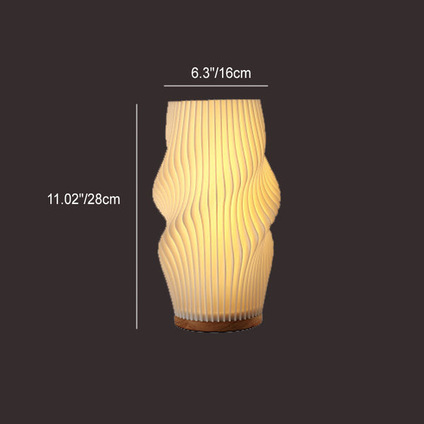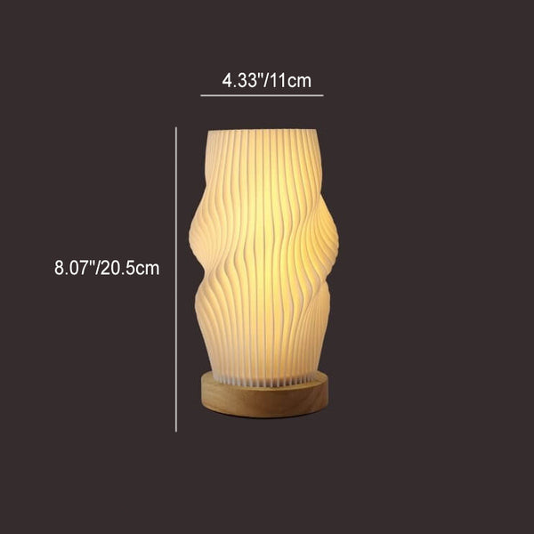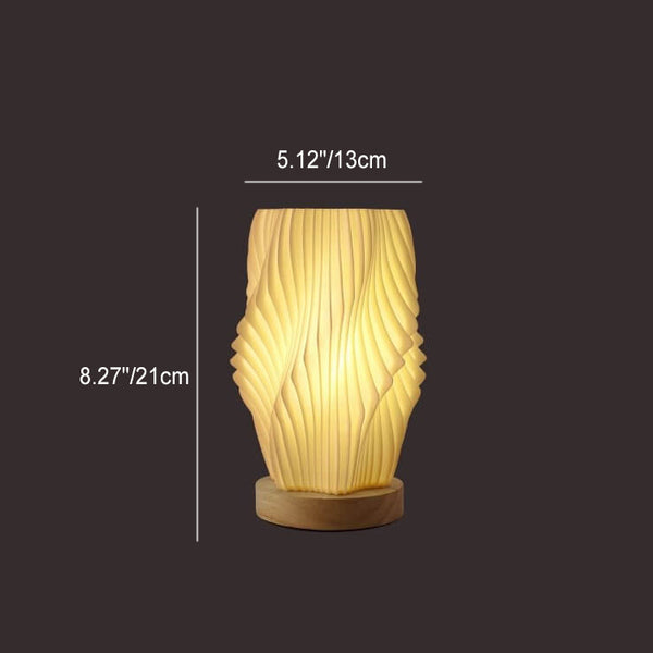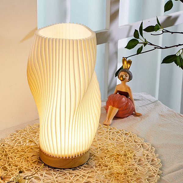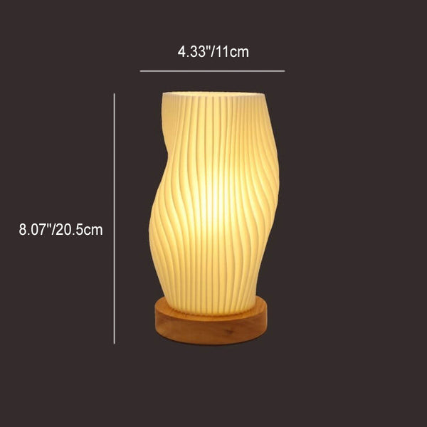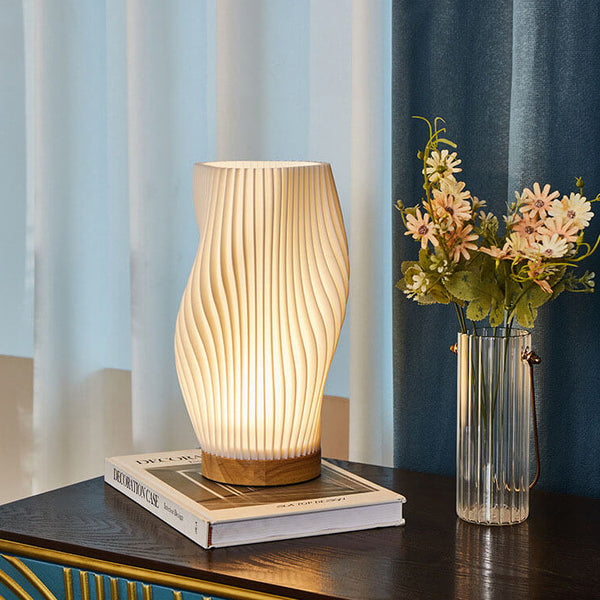 Contemporary Scandinavian Round Wave Pod Wood PLA 1-Light Table Lamp For Bedroom