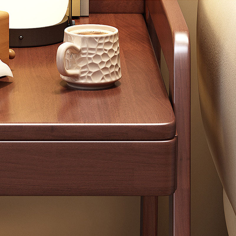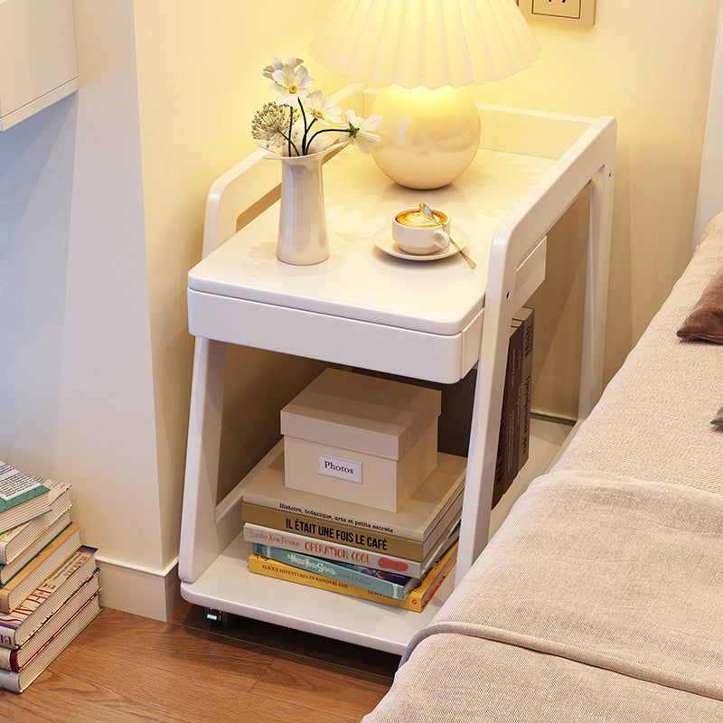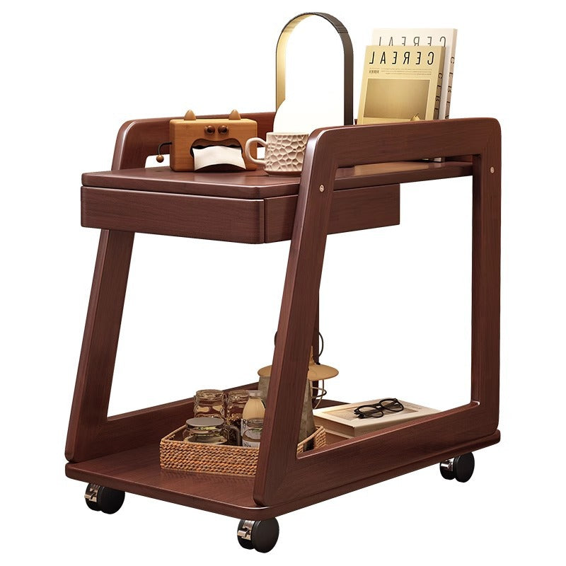 Modern Minimalist Rectangular Solid Wood End Table 1-Drawer 2-Tier Movable For Living Room