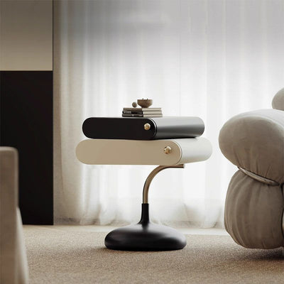 Modern Minimalist Round Metal End Table 2-Leg For Living Room