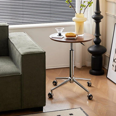 Contemporary Nordic Rectangular Round Pole Wood Stainless Steel Liftable Side Table For Living Room