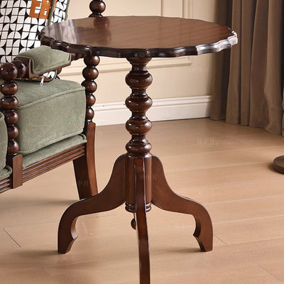 Traditional Vintage Round Black Walnut Solid Wood Side Table For Living Room