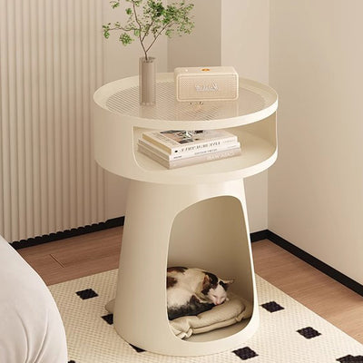 Contemporary Scandinavian Cream Round Curved Edge Plastic Iron Side Table For Living Room
