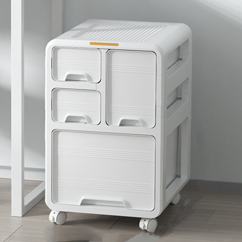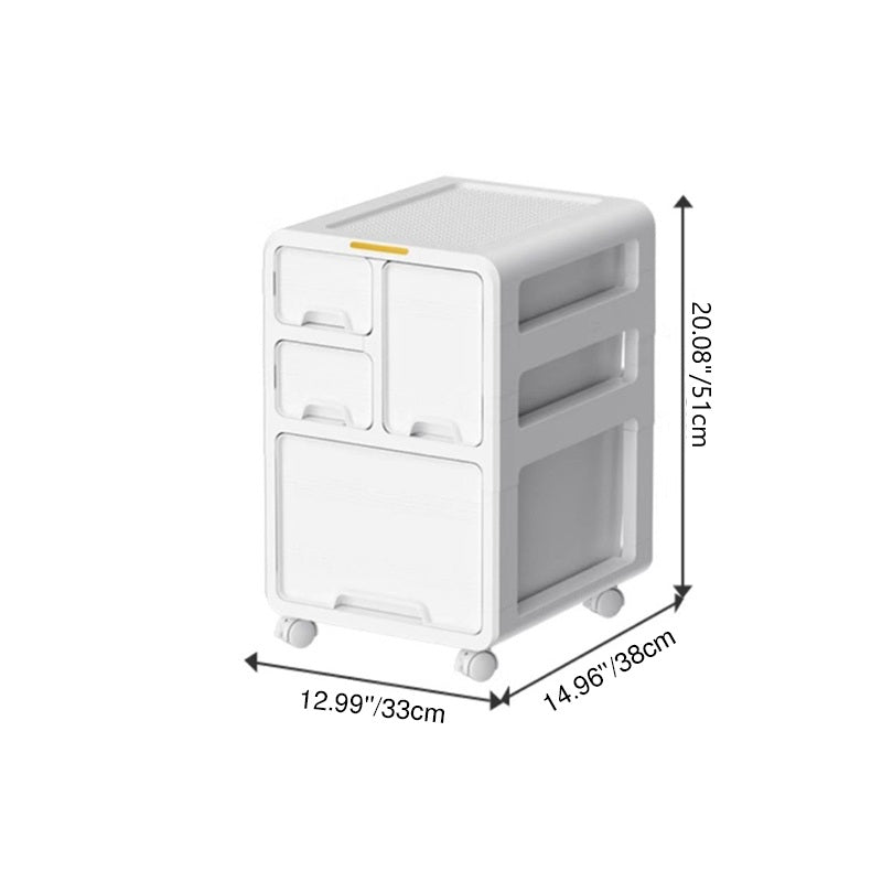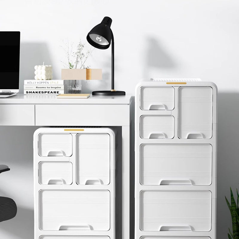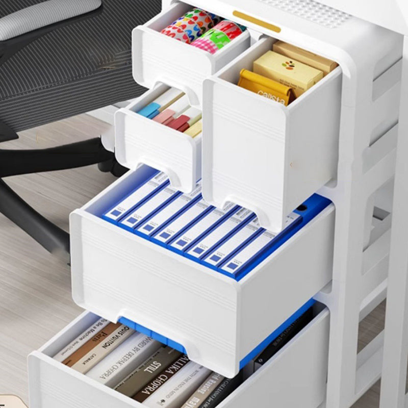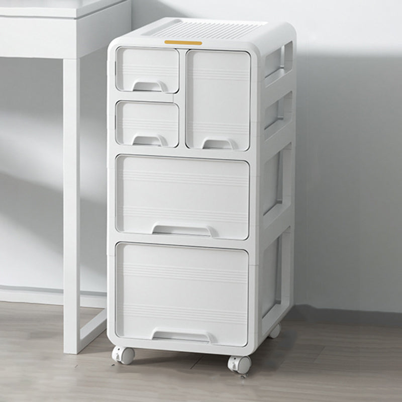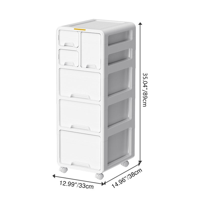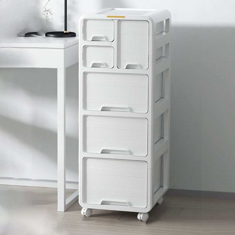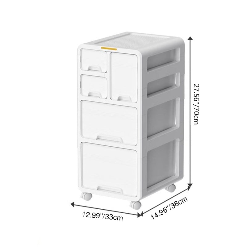This modern minimalist PP storage cabinet features 3 to 5 drawers with secure stopper design, smooth sliding, and rounded corners for safety. Equipped with wheels for easy mobility, the white finish blends seamlessly into any living room while keeping items organized and accessible.