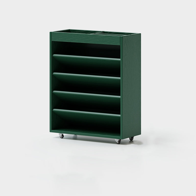 Designed with a slim rectangular profile, this movable 4-tier bookshelf is crafted from solid rubberwood and engineered wood for long-lasting stability without cracking. Available in green, walnut, cherry, black, and cream white, it provides versatile multi-level storage for books, toys, or décor beside desks, sofas, or walls in living rooms, bedrooms, and home offices.