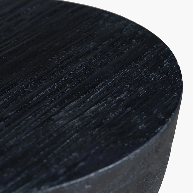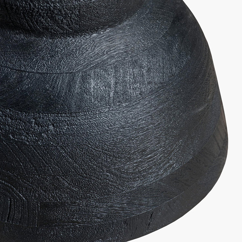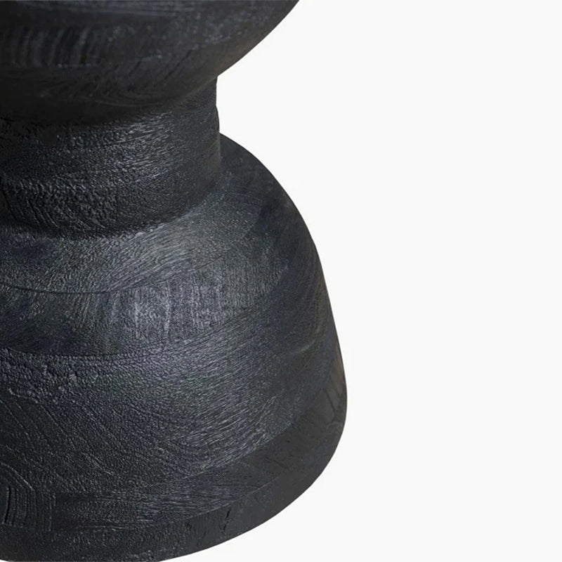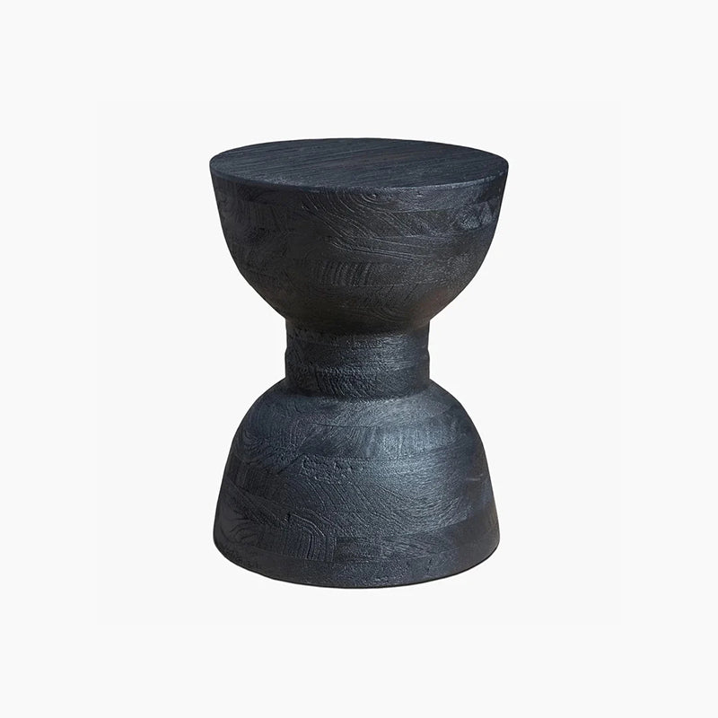 Introduce a striking focal point with this Nordic-style black round side table, defined by its sculptural hourglass silhouette that masterfully balances visual strength with a sense of lightness. Expertly crafted from solid carbonized wood, this piece boasts enhanced durability, superior moisture resistance, and a deep, rich refined black finish that is both sophisticated and naturally resilient. Its smooth, continuous curves and compact form create a calm, modern presence, making it an ideal side table, elegant nightstand, or artistic accent for any contemporary living space seeking a touch of understated drama and organic resilience.