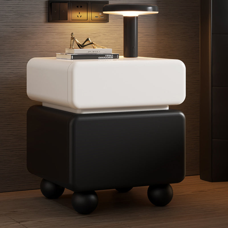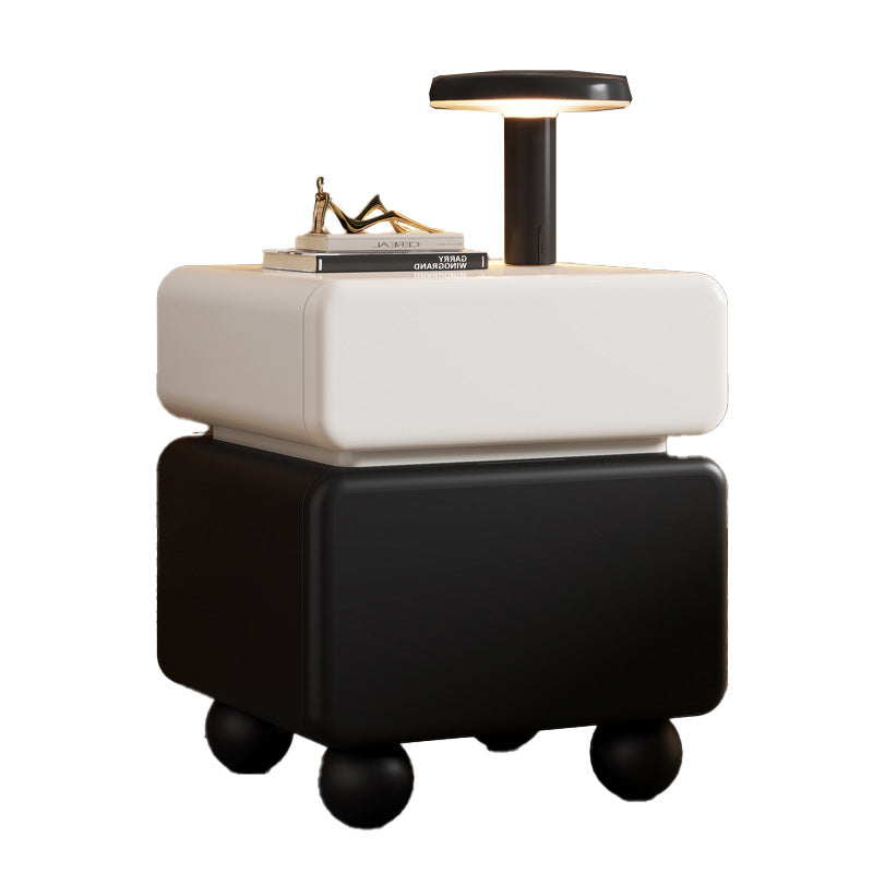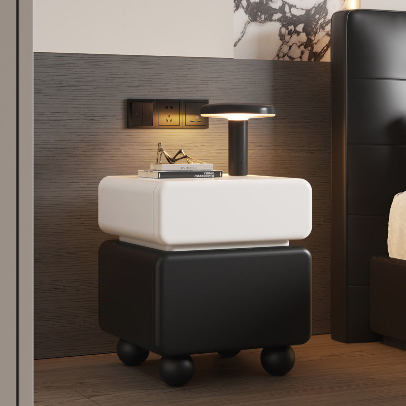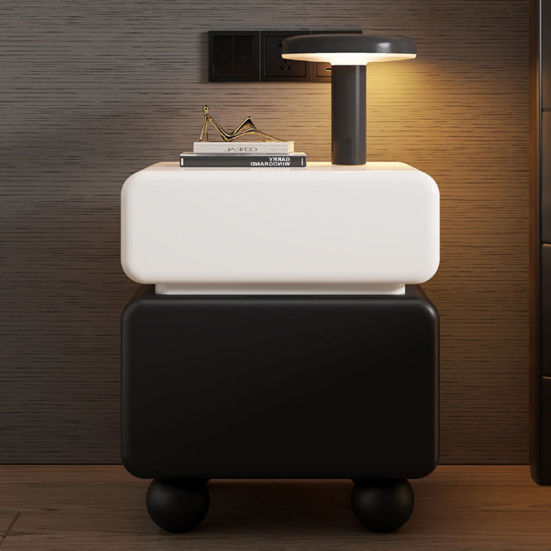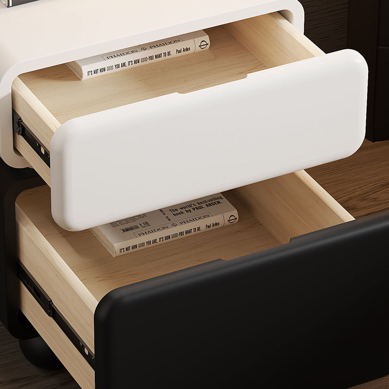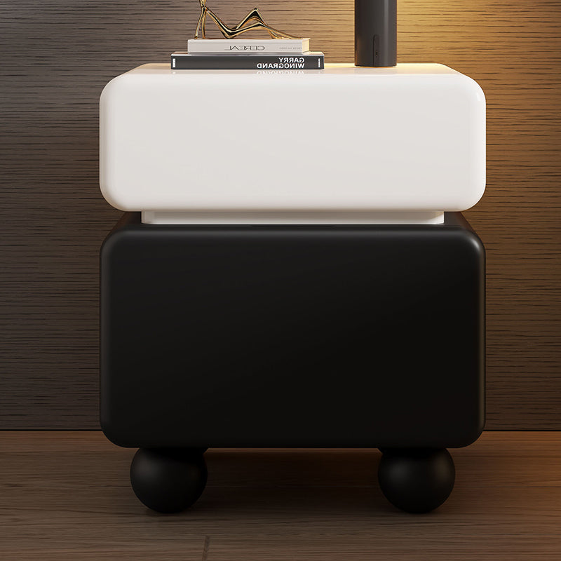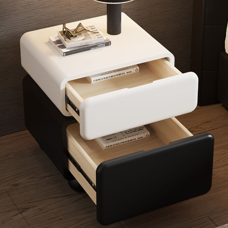 This modern minimalist nightstand is masterfully crafted from solid wood, featuring a sleek lacquered finish that exudes understated luxury. With two spacious drawers and a multi-layer organizational layout, it provides an elegant solution for everyday bedroom storage. Its sturdy, stable structure is complemented by thoughtfully rounded safety corners, ensuring a blend of style and security. Available in classic white and black, it is the perfect statement piece for compact bedrooms seeking a refined aesthetic.