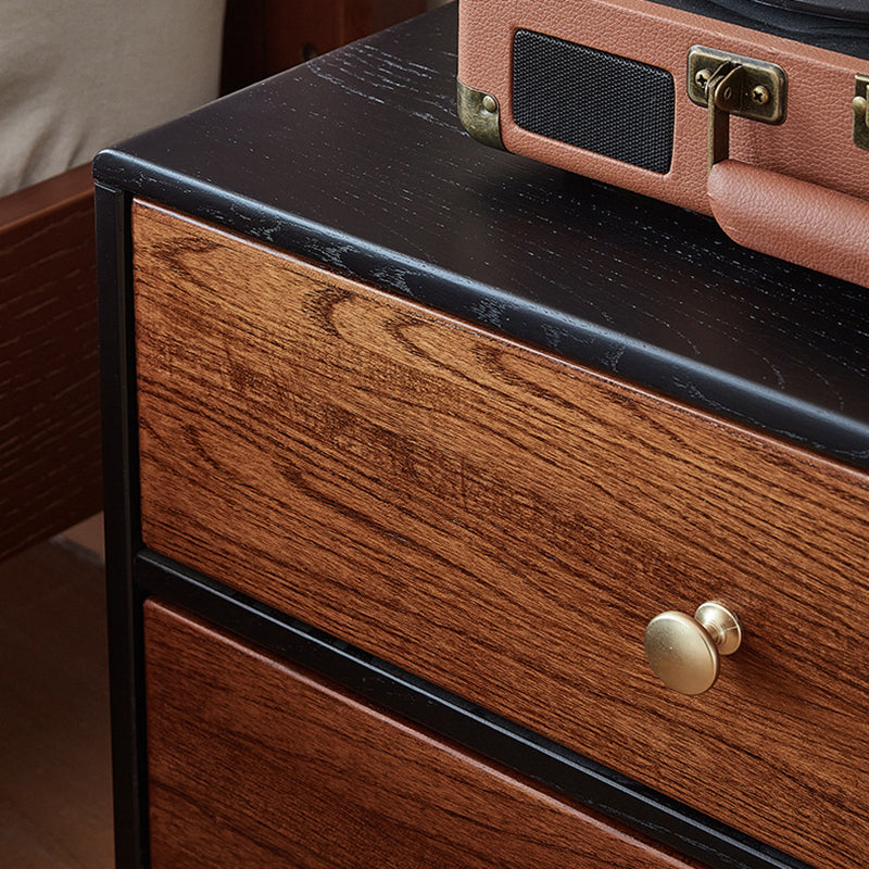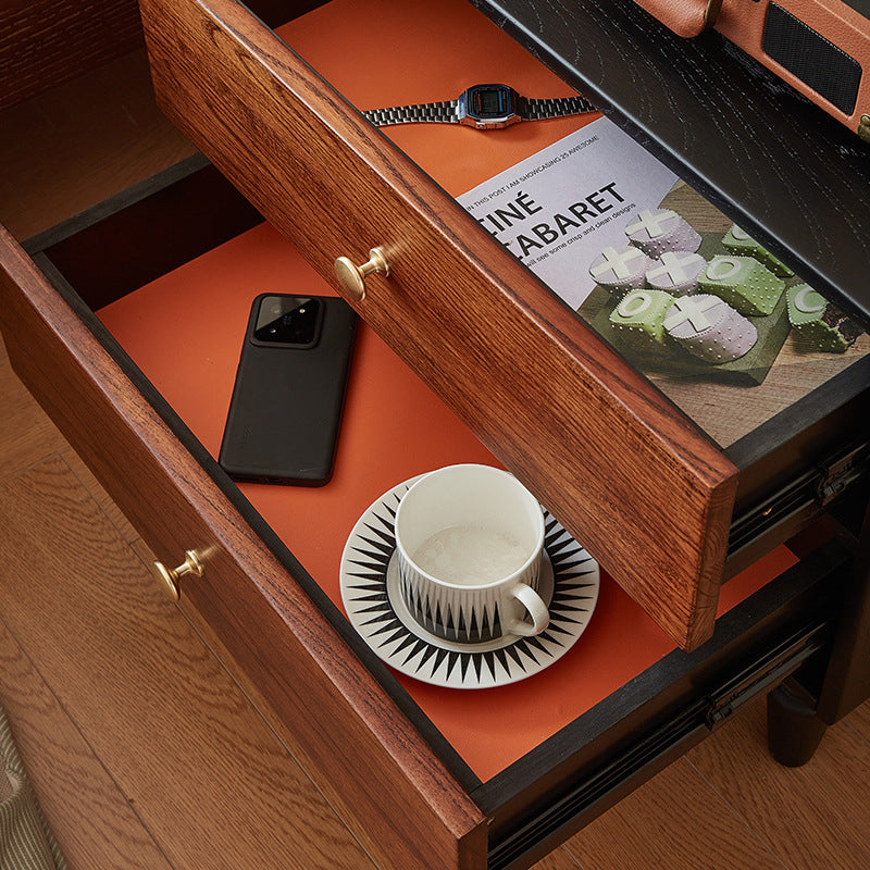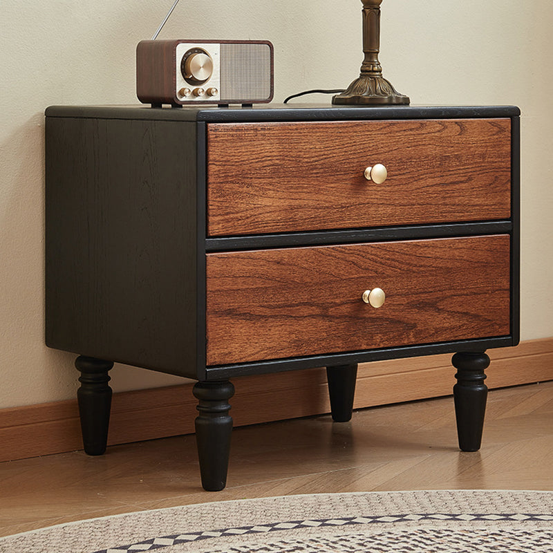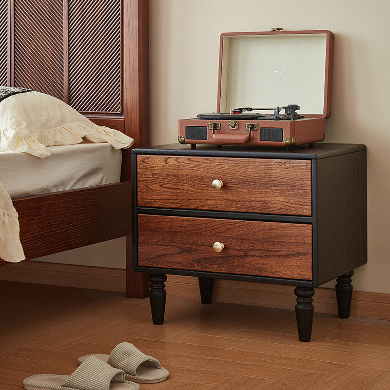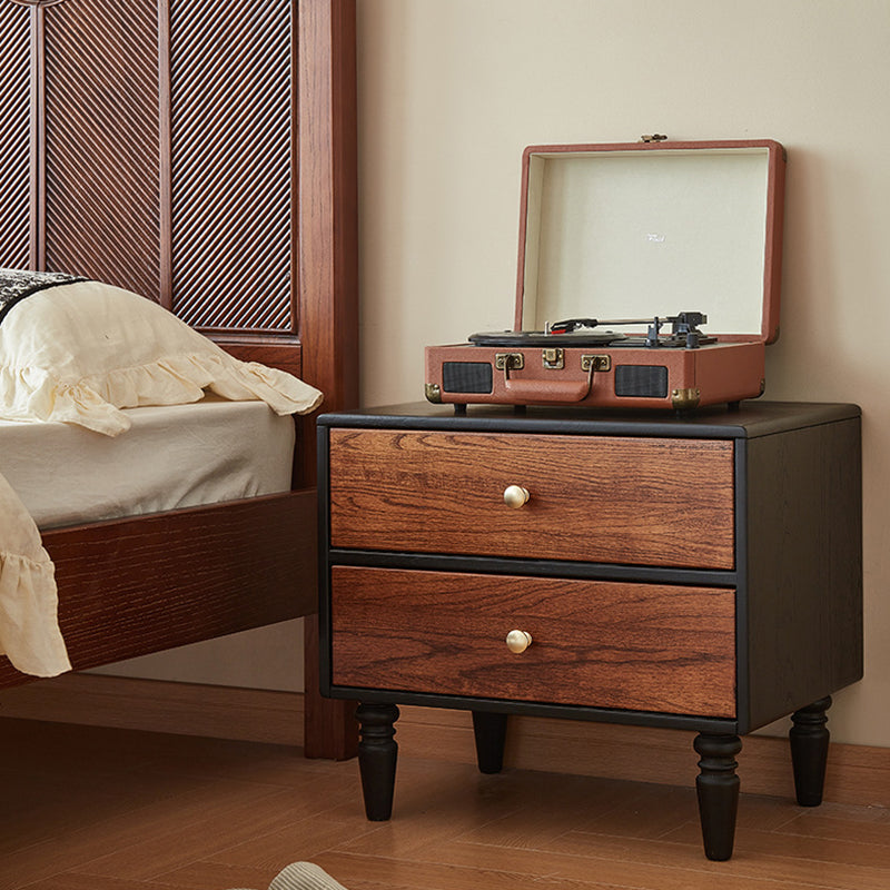 This traditional French nightstand is crafted from premium red oak with smooth, refined wood grain and a rounded square silhouette. Featuring two spacious drawers for organized storage, it’s available in elegant black or rich mahogany tones—perfect for adding vintage charm and functionality to any bedroom.